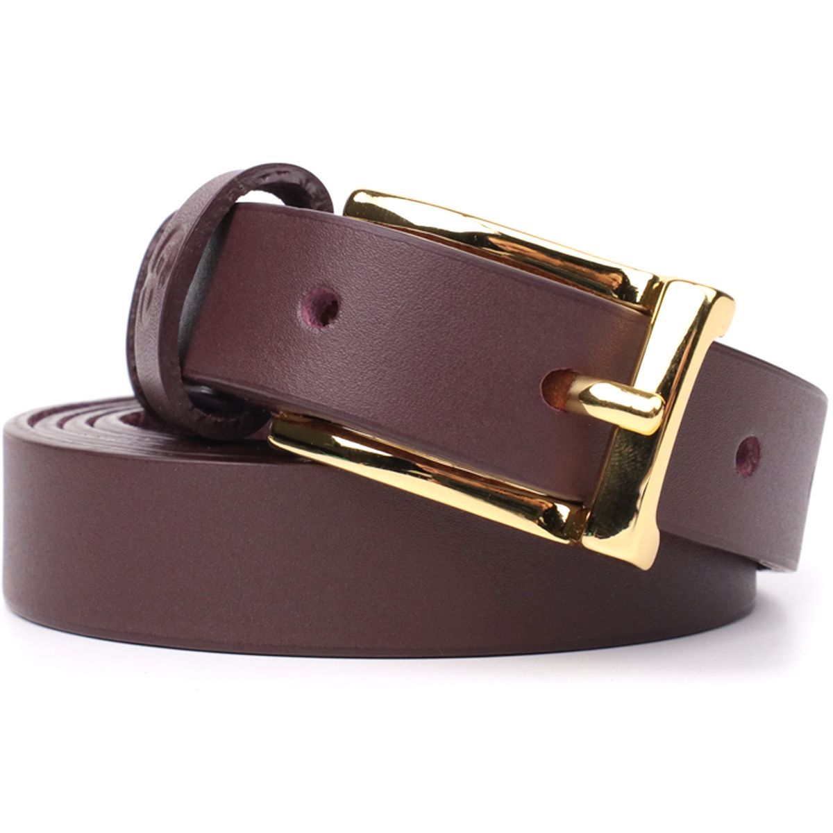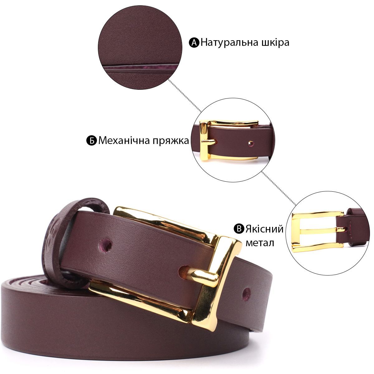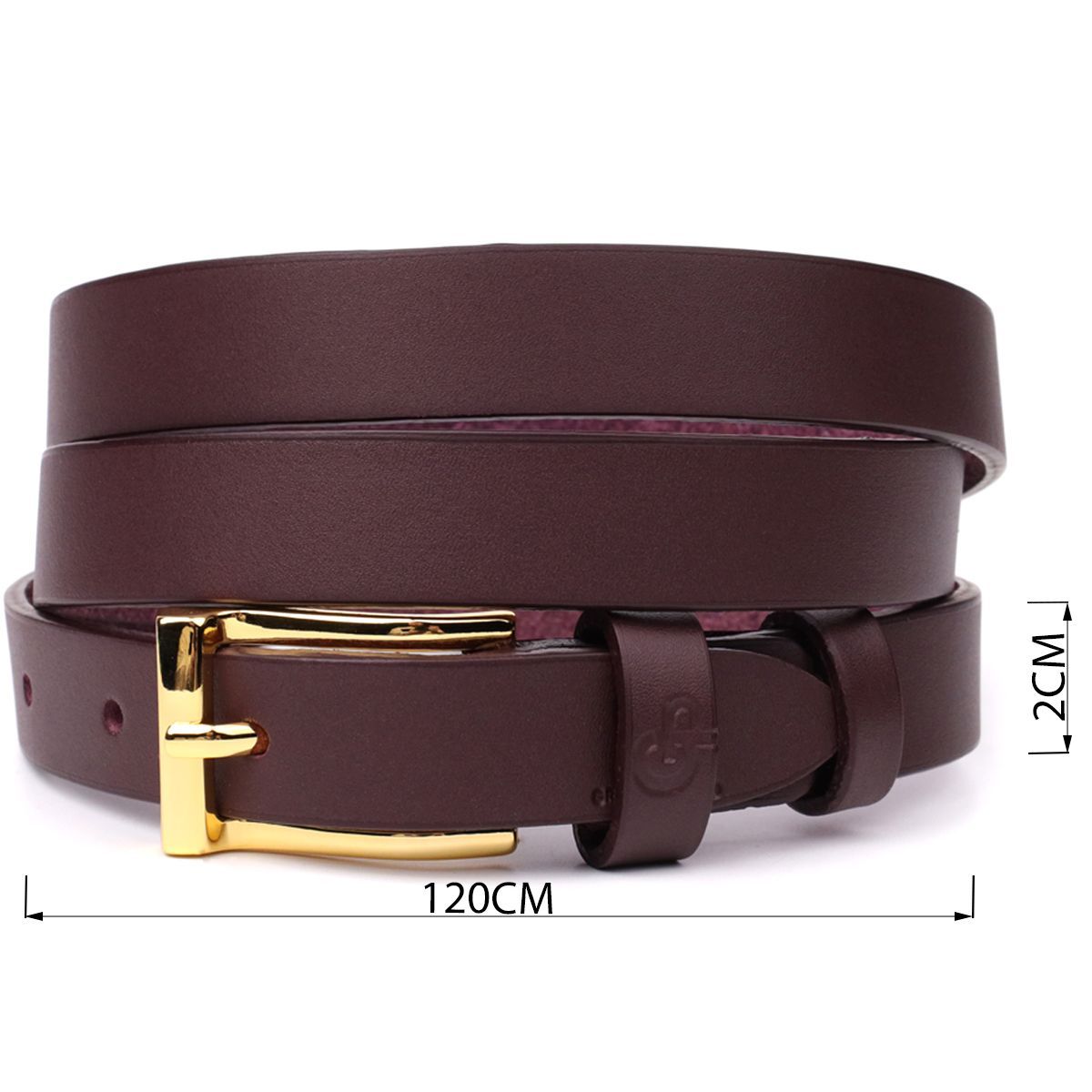 Модний вузький шкіряний ремінь для жінок GRANDE PELLE 22953 бордовий