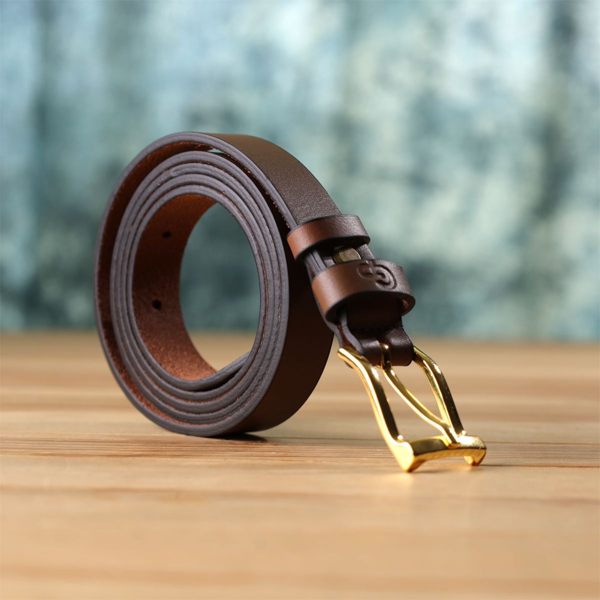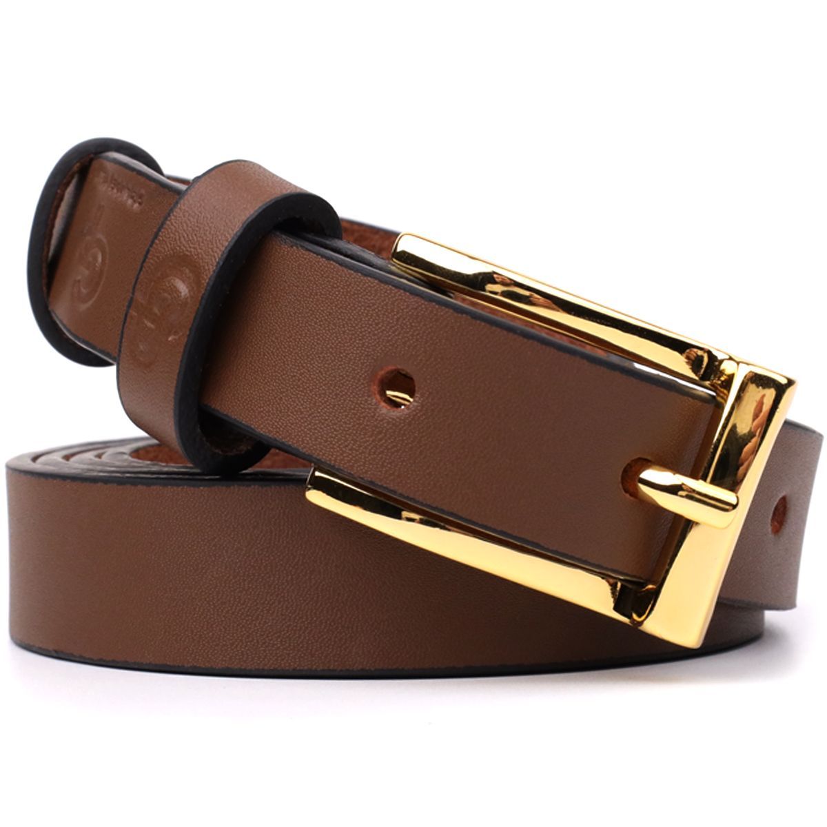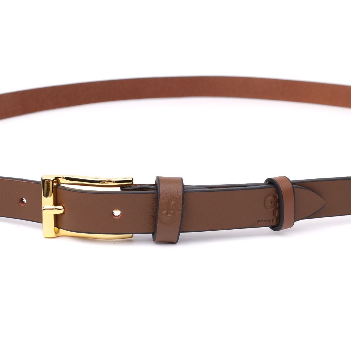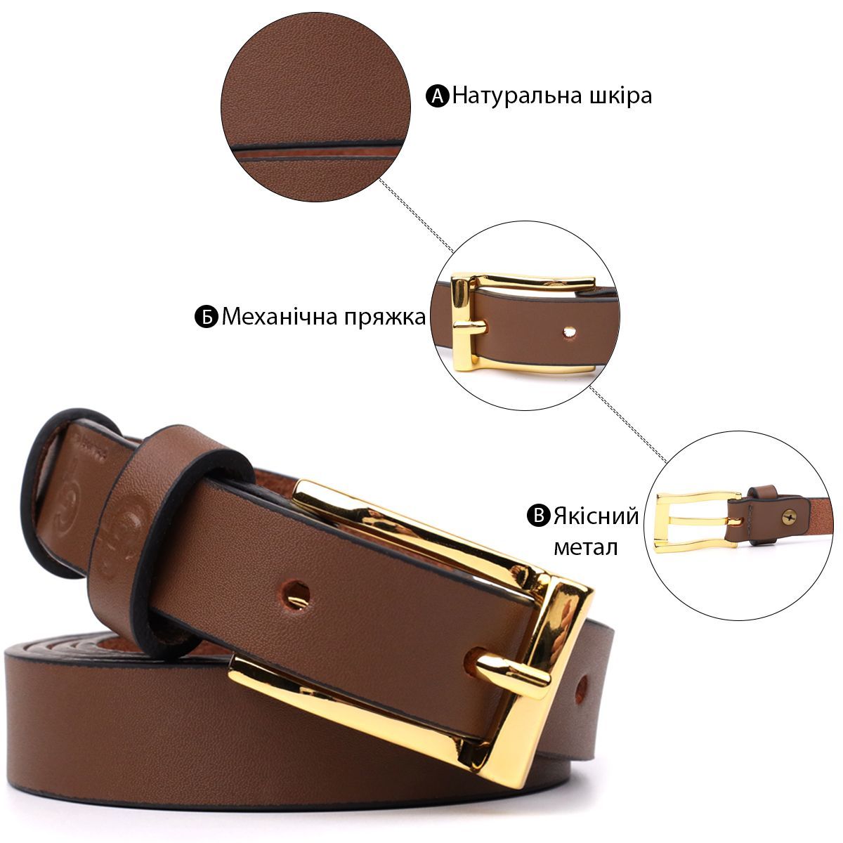 Модний вузький шкіряний ремінь для жінок GRANDE PELLE 22954 світло-коричневий
