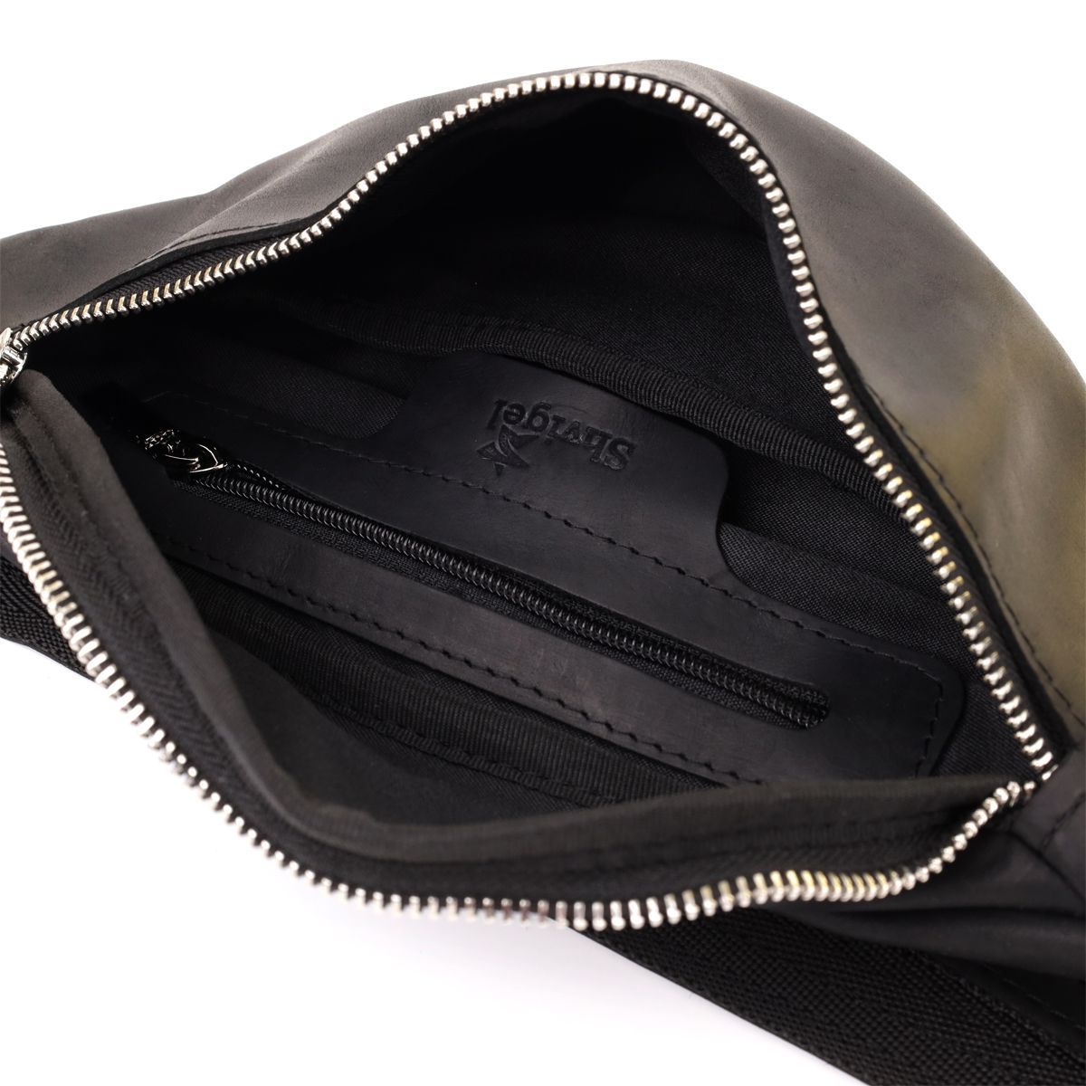 Надійна сумка бананка для чоловіків із вінтажної натуральної шкіри Shvigel 23138 чорна