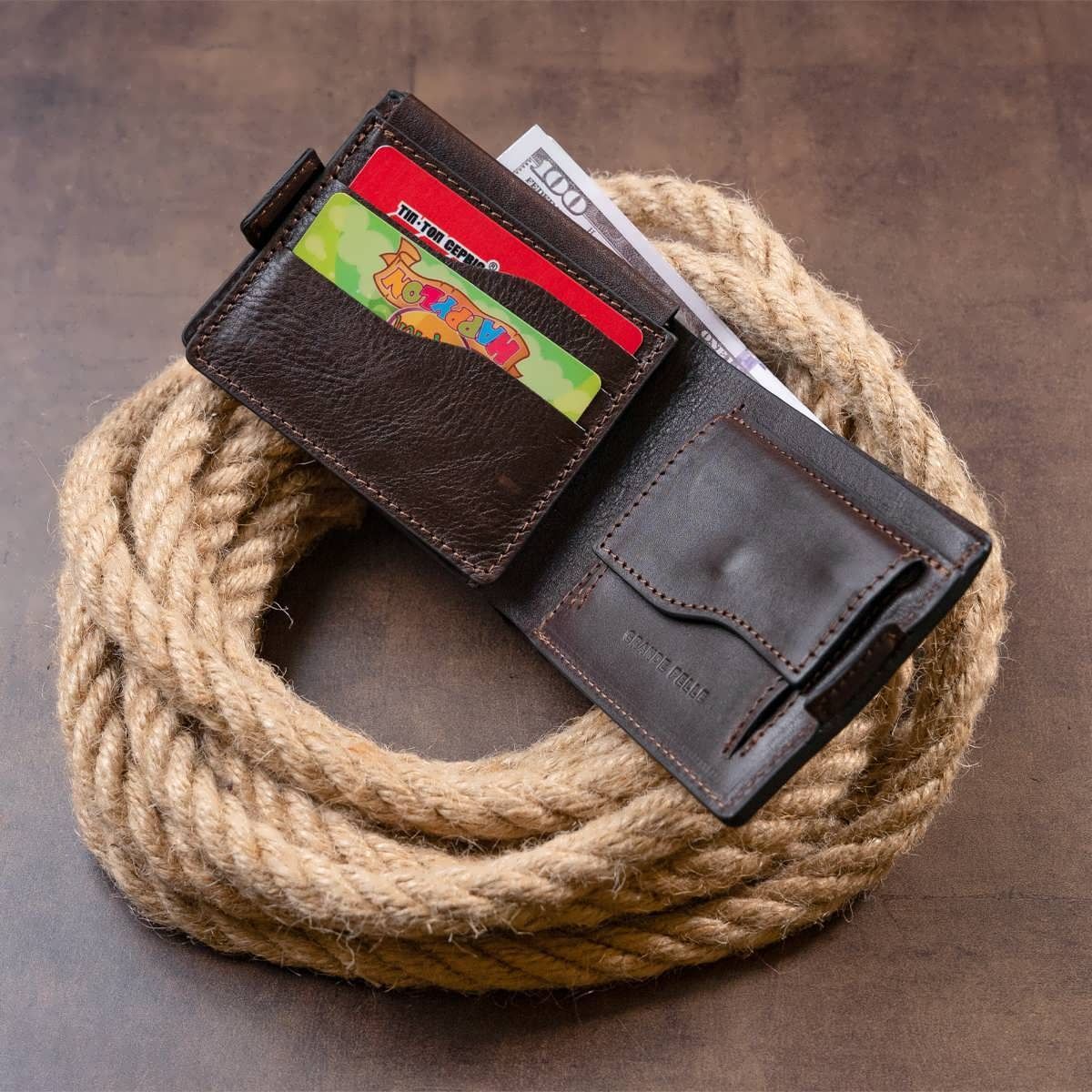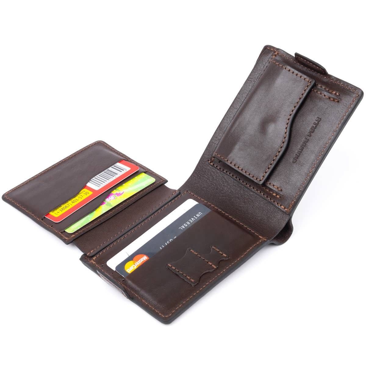 Стильне портмоне в дорогій гладкій шкірі найвищої якості. За функціональністю портмоне дуже практичне та доповнене всім необхідним. Виріб має два відділення для купюр, монетницю на кнопці, достатньо слотів для карток. Закривається магніт. Зручно сидить у руці. Продуманий дизайн виробу не залишить вас байдужим. З таким портмоне буде складно залишитися без компліментів. Замовляйте на нашому сайті за найвигіднішою ціною та переконайтеся у відмінній якості виробу. У комплекті – фірмова коробка.
