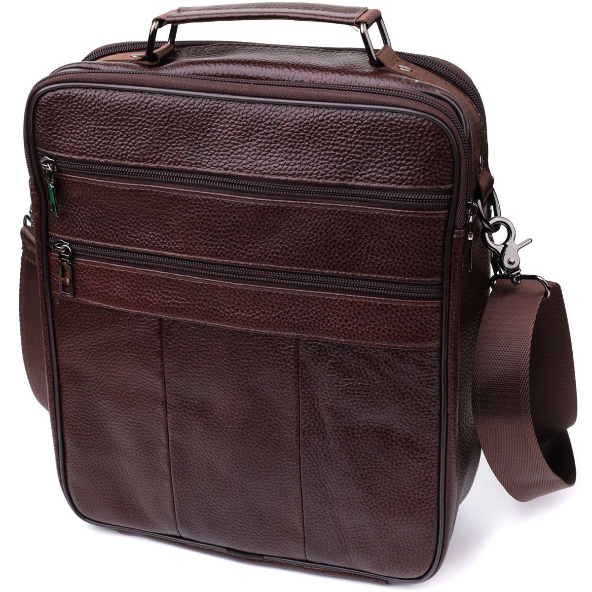 Зручна чоловіча шкіряна сумка із зернистої натуральної шкіри поєднує в собі міцність, функціональність та стильний дизайн. Вона стане ідеальним аксесуаром для тих, хто цінує зручність та організованість у повсякденному житті.