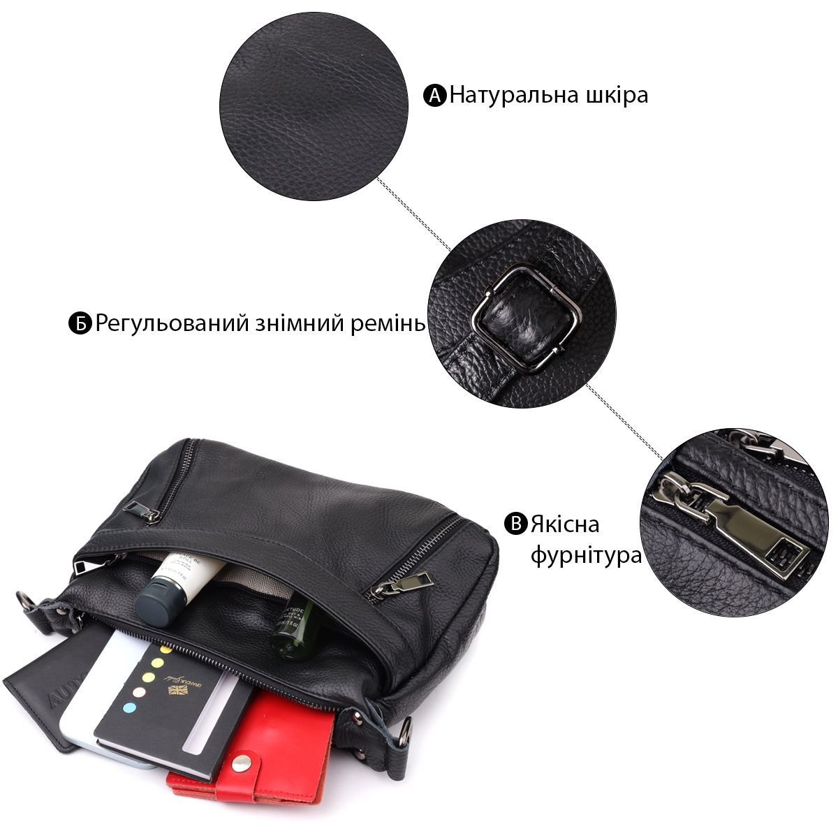 Практична жіноча сумка з натуральної шкіри Vintage 23011 чорна