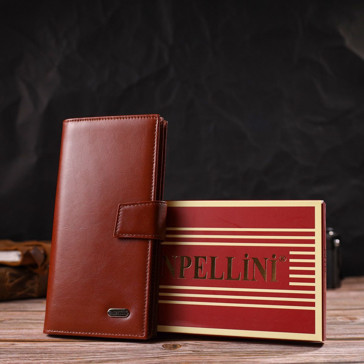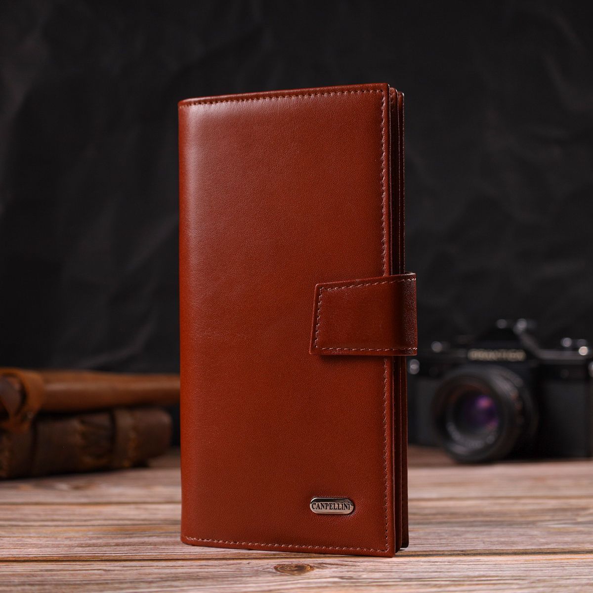 Практичне вертикальне чоловіче портмоне з натуральної гладкої шкіри Canpellini 21721 коричневе