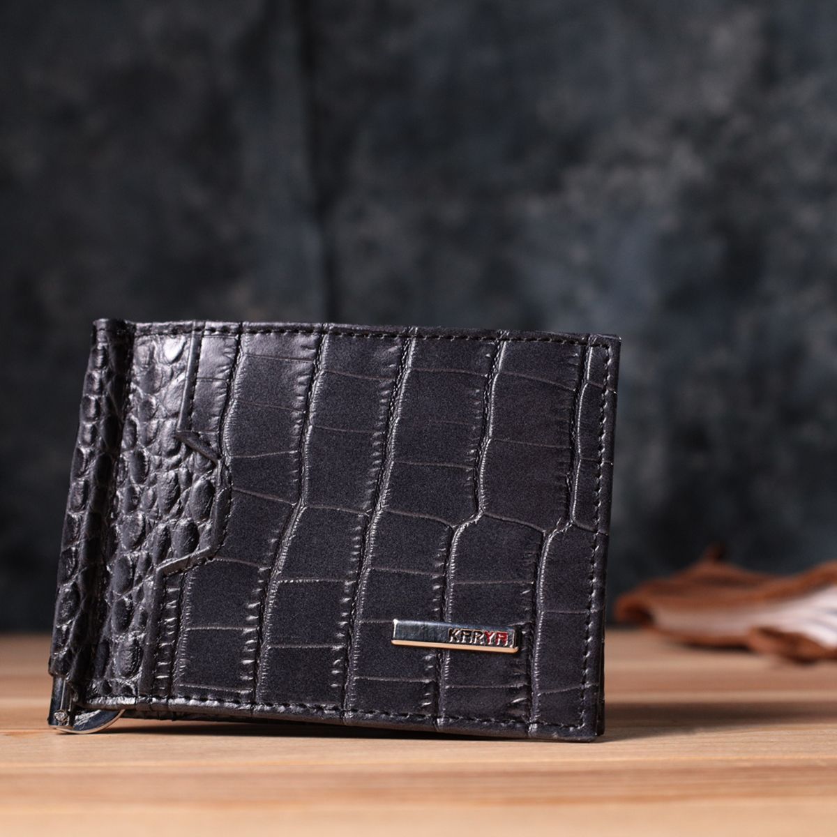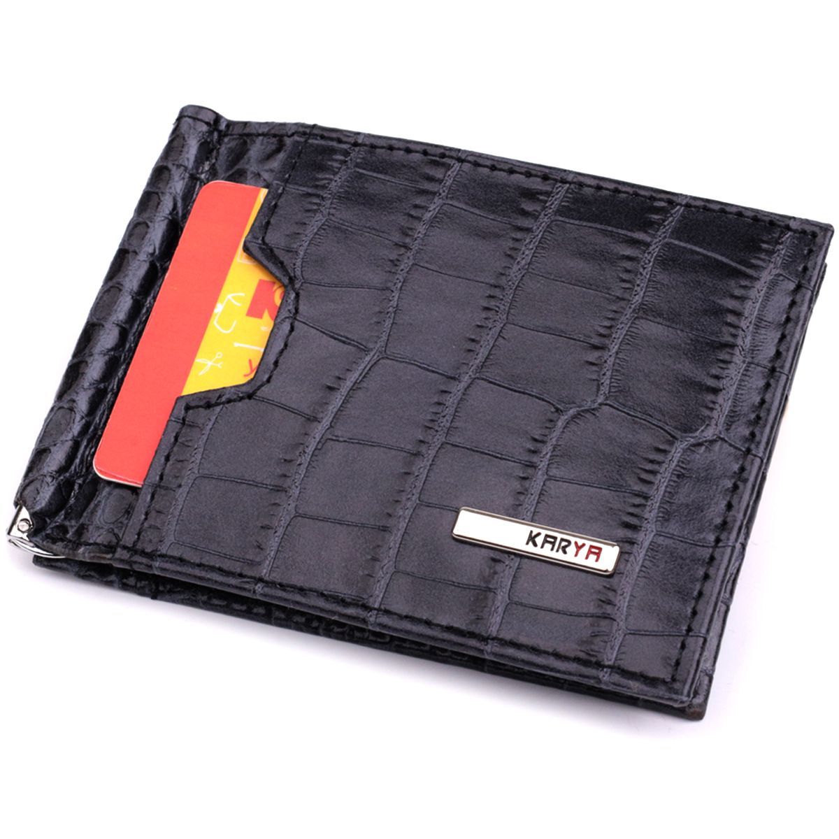 Практичний чоловічий гаманець-затиск із натуральної шкіри KARYA 22851 сіра