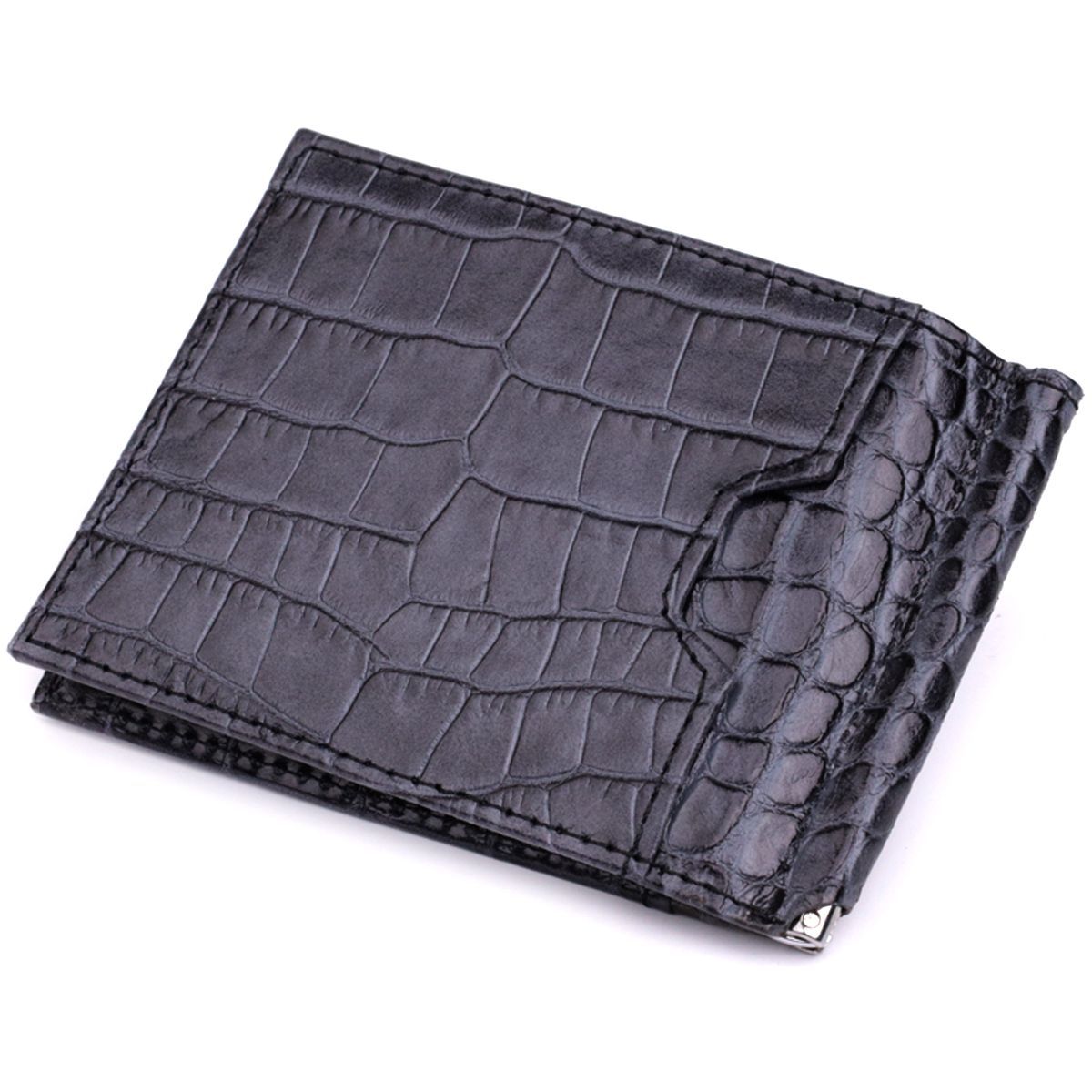 Стильний гаманець для купюр виконаний з фактурної натуральної шкіри з тисненням під крокодила. Аксесуар виконаний у стильному сірому кольорі. Купюри фіксуються металевим утримувачем. Користь затиску полягає в тому, що він набагато компактніший, ніж гаманець, легко поміщається в руку або кишеню. Аксесуар упакований у фірмову коробочку. Вироби з натуральної шкіри завжди будуть чудовим подарунком для близької людини.