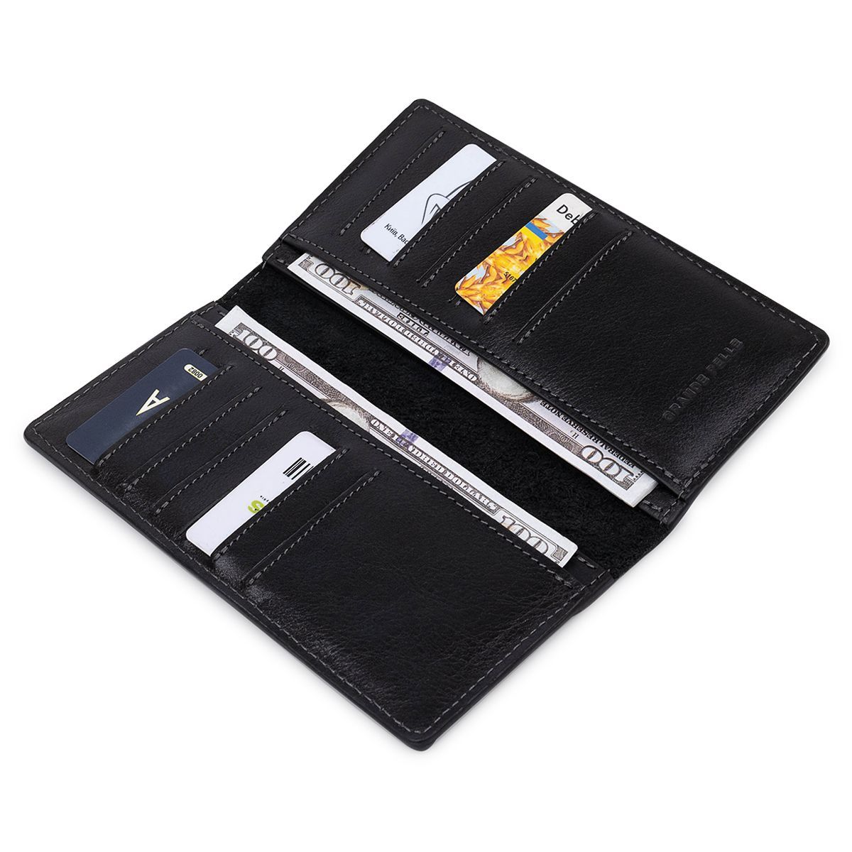 Відмінне портмоне для чоловіків із висококласної натуральної шкіри, стійкої до зношування. Має гладку і глянсову фактуру, дуже приємну на дотик. Усередині розташувалися місткі відділення для купюр та чотирнадцять слотів для кредитних чи візитних карток. Упакований гаманець у фірмову картонну коробку.