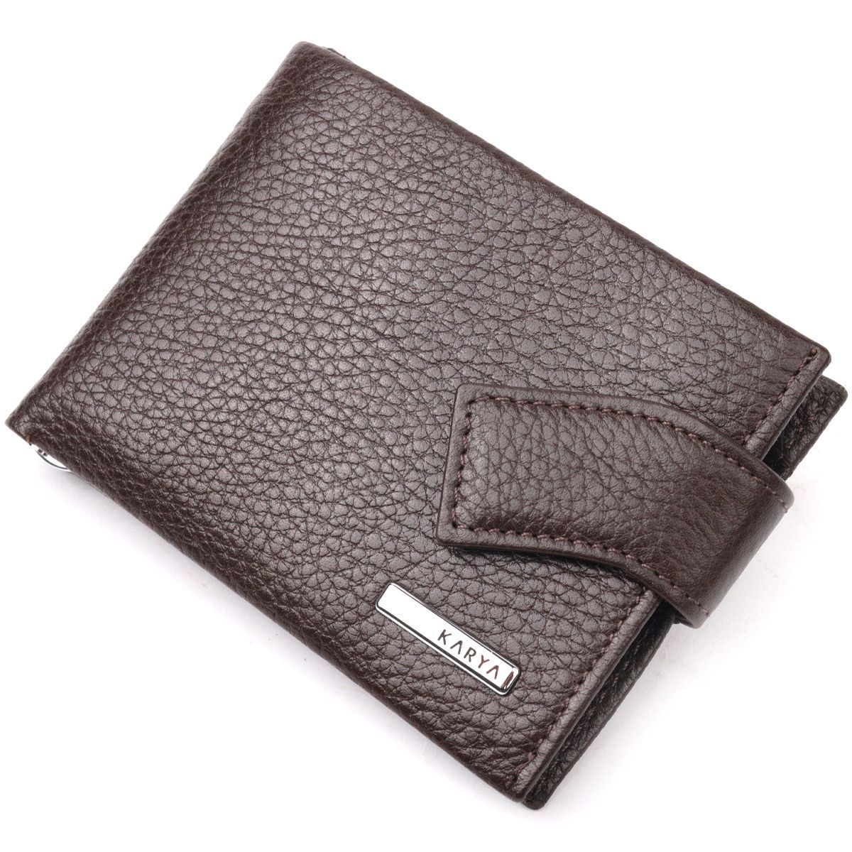 Практичний чоловічий затиск із натуральної шкіри KARYA 21045 коричневий