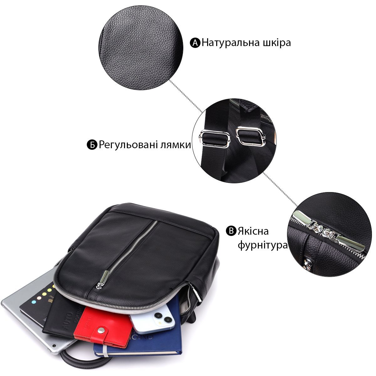 - шкіряно-текстильні регульовані лямки;