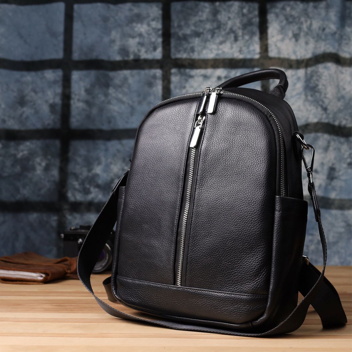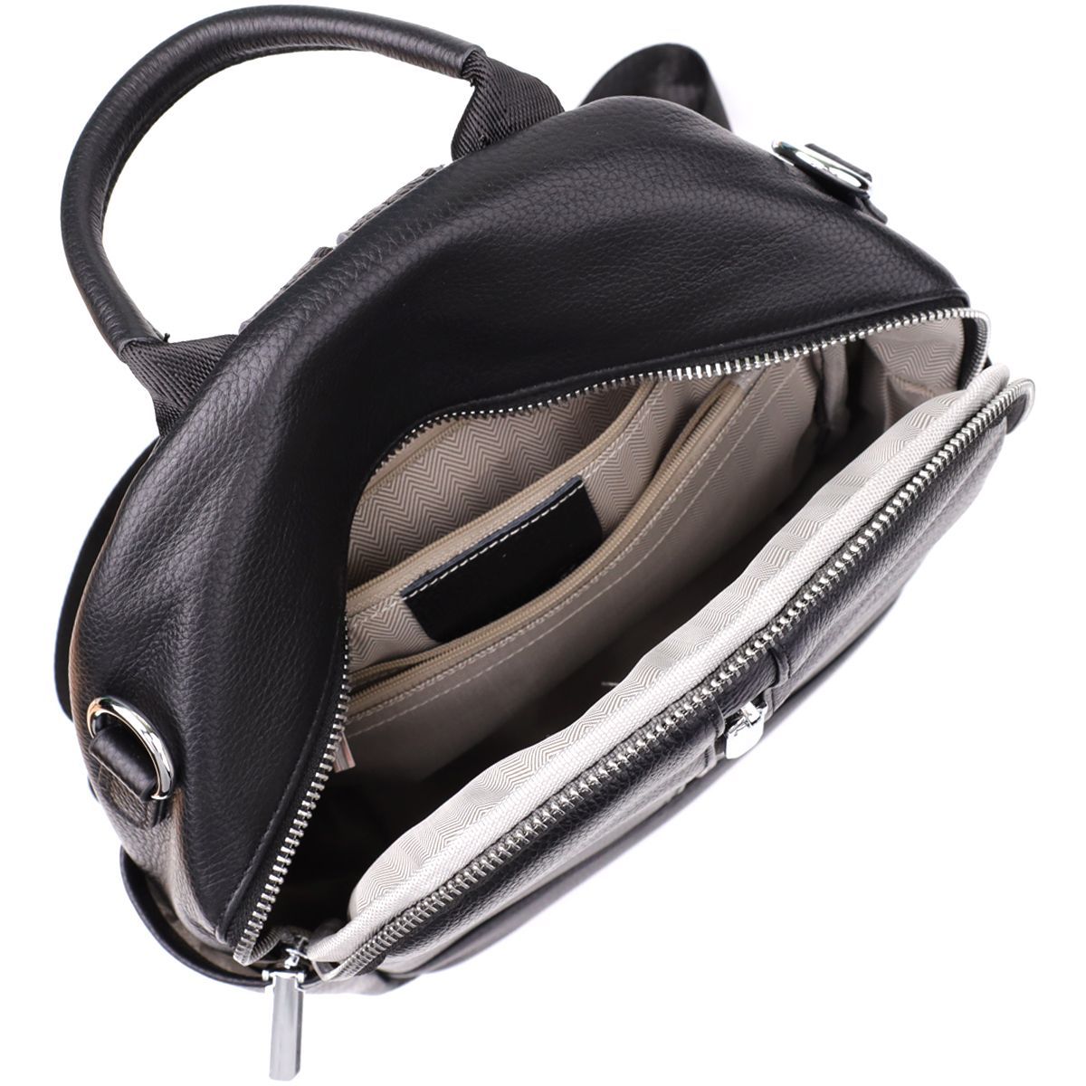 Для комфортного перенесення передбачена міцна шкіряна ручка, шкіряно-текстильні лямки, що регулюються, а також текстильний ремінець, що дозволяє носити рюкзак як сумку. Ця модель ідеально підійде для повсякденного використання, поєднуючи зручність та сучасний дизайн.
