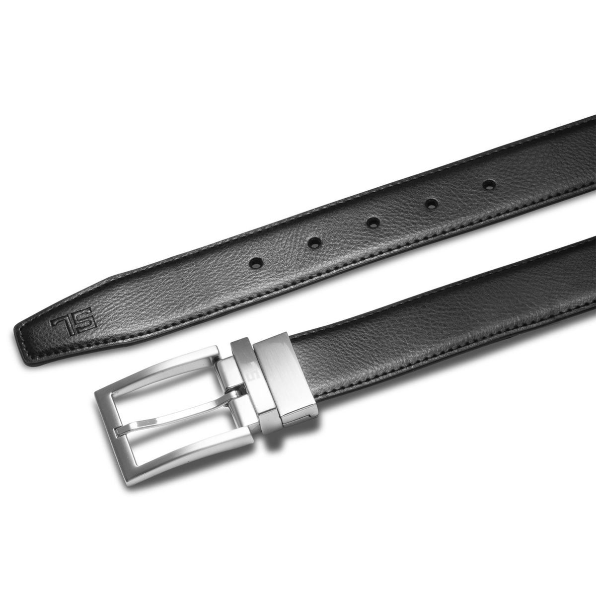 Ремінь виготовлений із натуральної шкіри високої якості, приємної на дотик та стійкої до зносу. Ширина полотна 3.3 см оптимальна для більшості класичних та джинсових петель для ременя. Металева пряжка в класичному стилі повертається навколо своєї осі, що дозволяє за лічені секунди змінити колір ременя. Металеві петлі надійно фіксують ремінь у застібнутому стані.