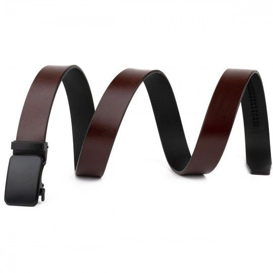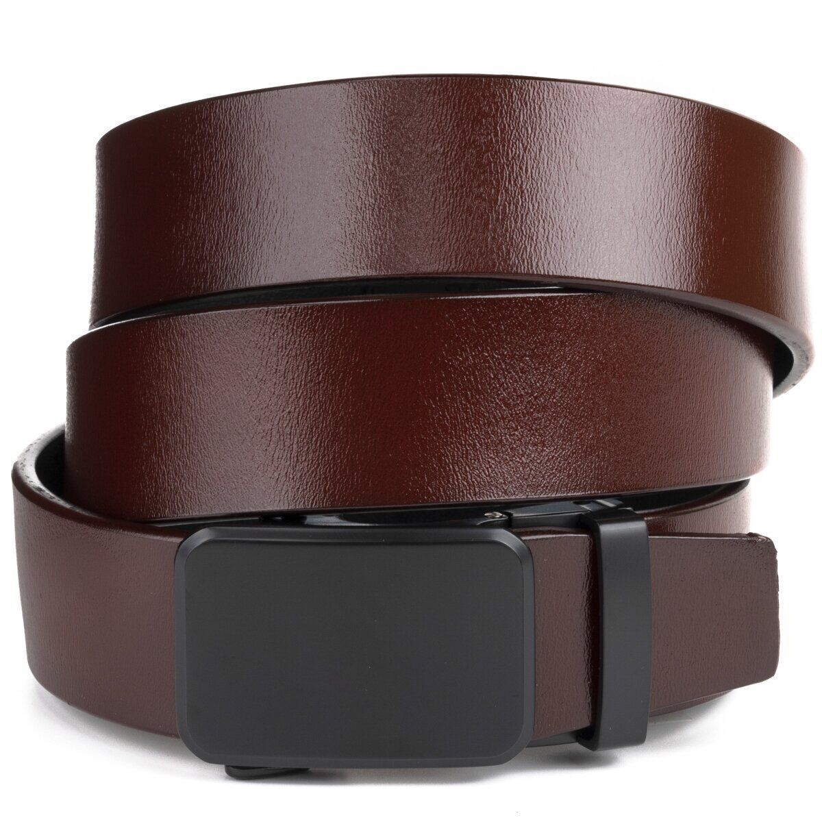 Ремінь чоловічий з чорною пряжкою автомат 20271 Vintage коричневий