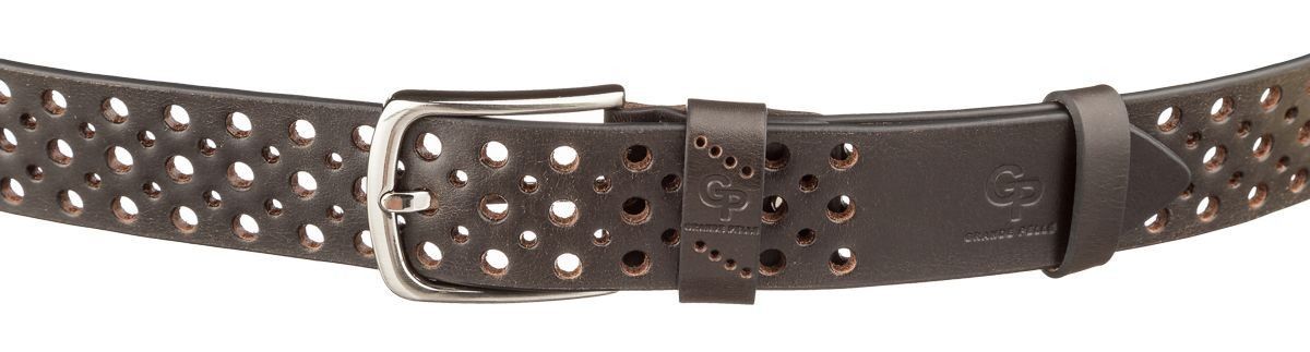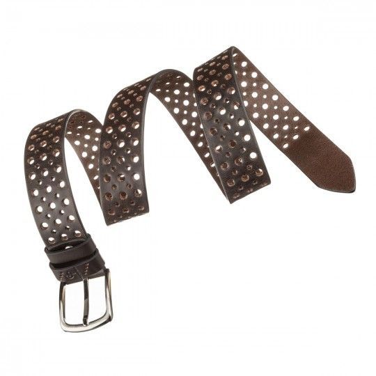 Стильний коричневий ремінь із цілісної італійської шкіри, модель підійде як чоловікам, так і жінкам. Незвичайне полотно перфороване отворами різних діаметрів, що надає виробу вишуканості та неповторності. Виробник використовує виключно імпортну фурнітуру, яка не темніє, не дряпається і не викликає алергії. Універсальний ремінь під джинси та під штани. Ремінь упакований у картонну упаковку.