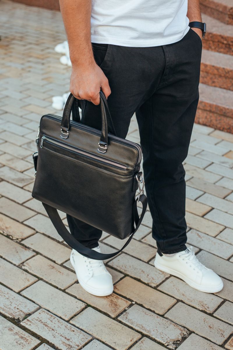Чоловіча шкіряна сумка-нужний аксесуар для ділового чоловіка. Закривається на блискавку. Колір фурнітури — чорна. Фурнітура — метал. Підкладка - текстиль. Знімний плечовий ремінь регулюється за довжиною. Стане незамінним помічником для Вас на кожен день як в офісі, так і в повсякденному житті.