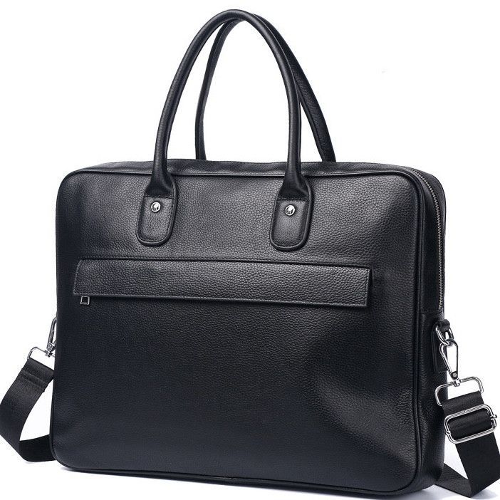 Чоловіча сумка з натуральної телячої шкіри. Каркасна форма запобігає деформації вмісту, зокрема документів. Підкладка виготовлена зі щільної тканини нейтрального кольору. Надійні анатомічні ущільнені ручки забезпечують максимальний комфорт під час носіння сумки в руці. Усередині розташоване відділення для ноутбука з фіксатором, велика кишеня на блискавці, 2 відсіки для ручок, 2 кишені відкритого типу для мобільних телефонів або окулярів. З лицьового боку містка кишеня на блискавці, прикрита невеликим навісним клапаном. З тильного боку кишеня для швидкого доступу до необхідних дрібниць — портмоне або візитниці. Наплічну шлейку, виготовлену зі щільного текстилю, можна відстебнути за потреби.