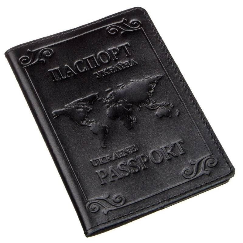 Стильна обкладинка на паспорт. Модель класичного чорного кольору. Виріб виготовлений з натуральної шкіри найвищої якості. На лицьовій стороні обкладинки тиснення у вигляді рамки та карти світу. Шкіряна обкладинка захистить ваш паспорт від зношування. Якщо ви не знаєте, що купити на подарунок – рекомендуємо шкіряну обкладинку.