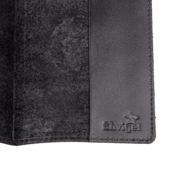 Шкіряна обкладинка на паспорт з карткою та рамкою SHVIGEL 13982 чорний