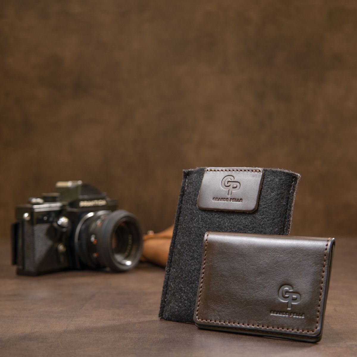 Шикарна невелика візитниця із добротної високоякісної шкіри. Має гарний коричневий колір шоколадного відтінку, що виглядає дуже красиво та багато. Фактура гладка з невеликим переливом. Відмінно підійде як невеликий презент для хорошої людини.
