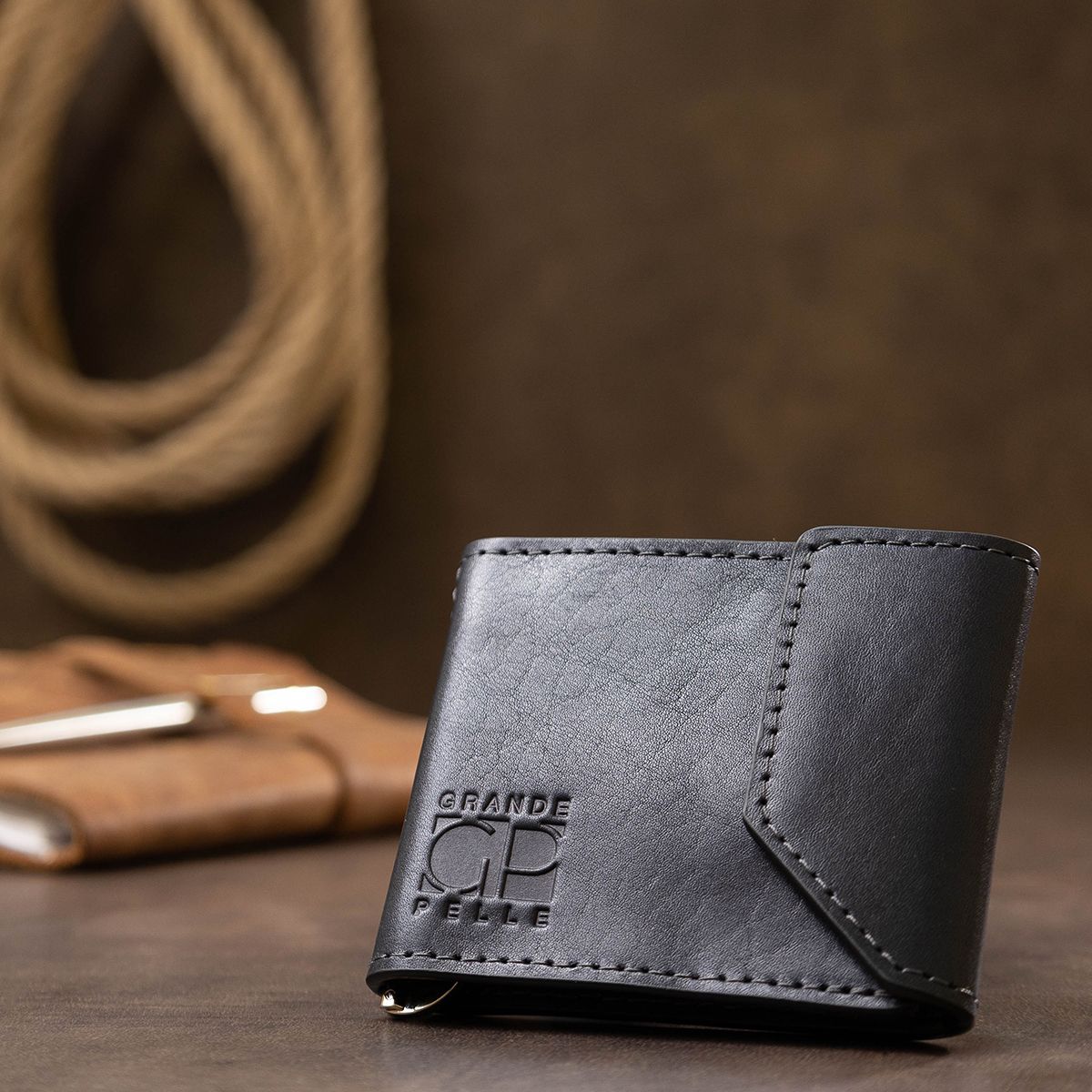 Шкіряний чоловічий затискач для грошей на магніті Grande Pelle 11546 темно-синій