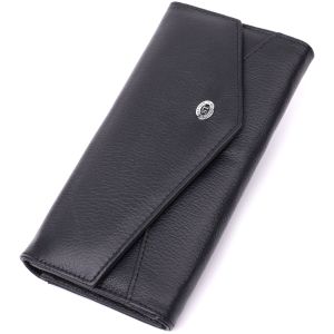 Шкіряний жіночий гаманець з геометричним клапаном ST Leather 22546 чорний