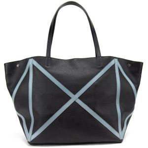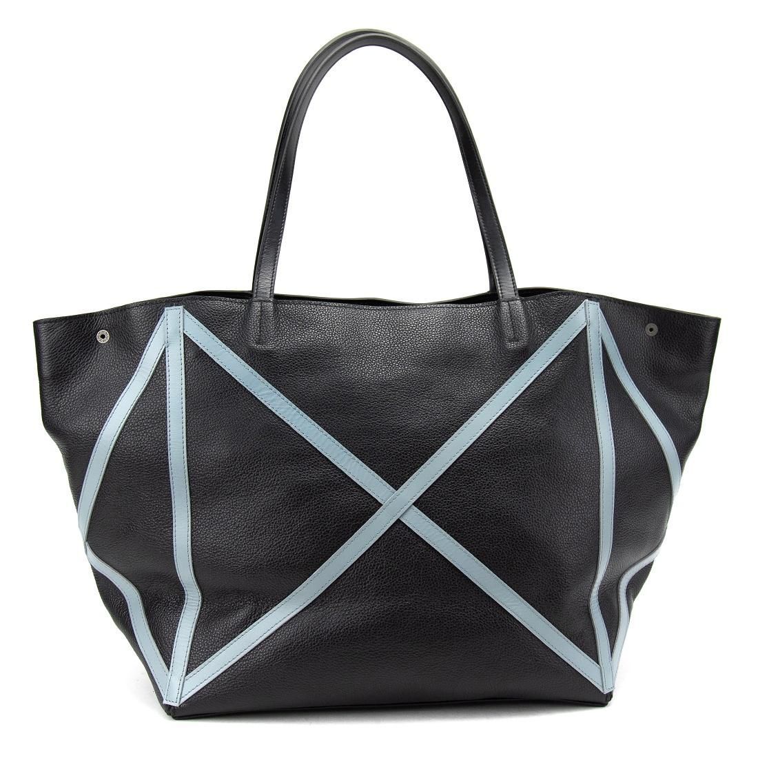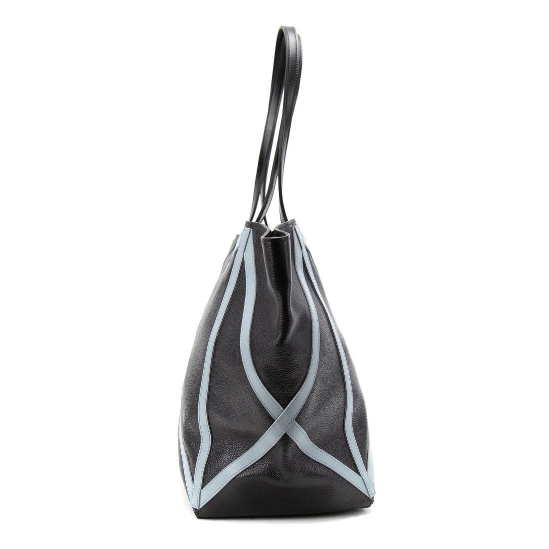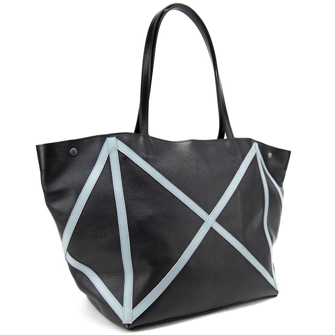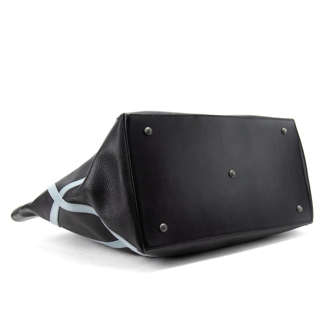 Шкіряний жіночий шоппер з акцентними блакитними швами Tavinchi CH-4835ABL-FL чорний