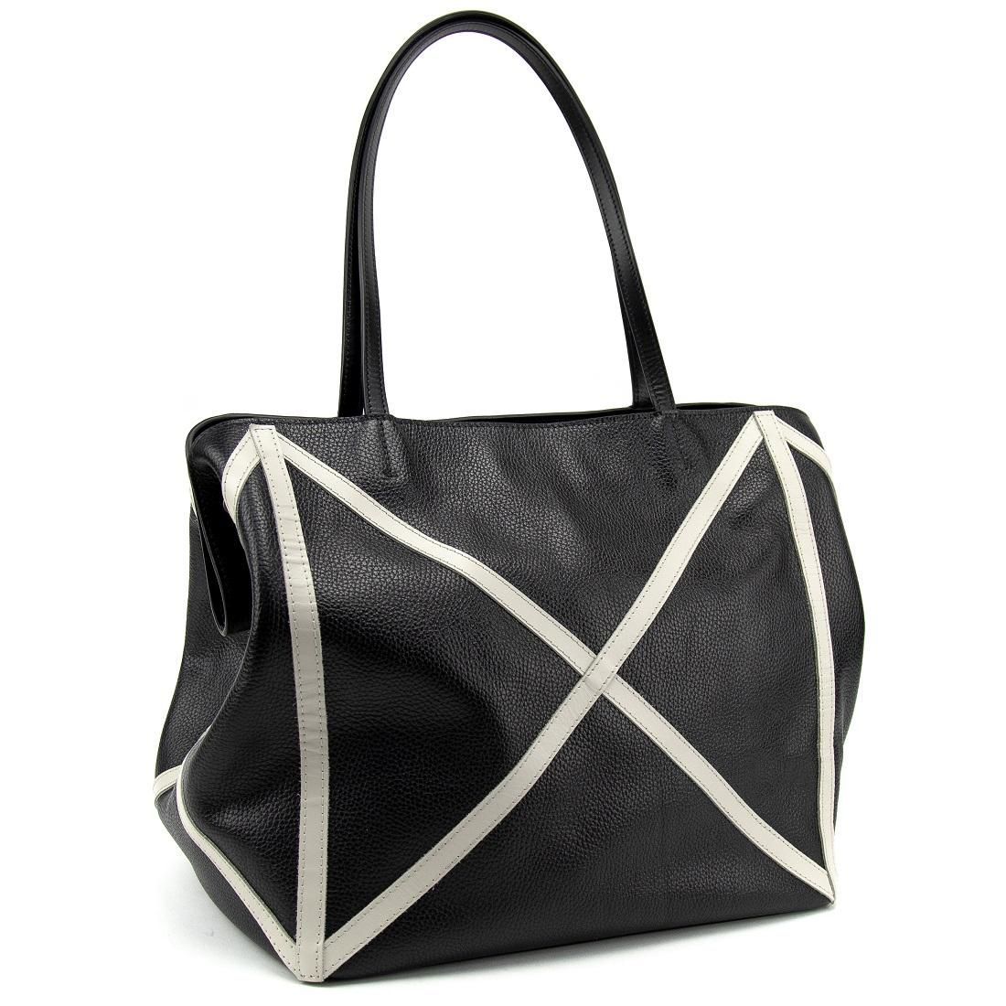 Шкіряний жіночий шоппер з акцентними швами Tavinchi CH-4835A-FL чорний