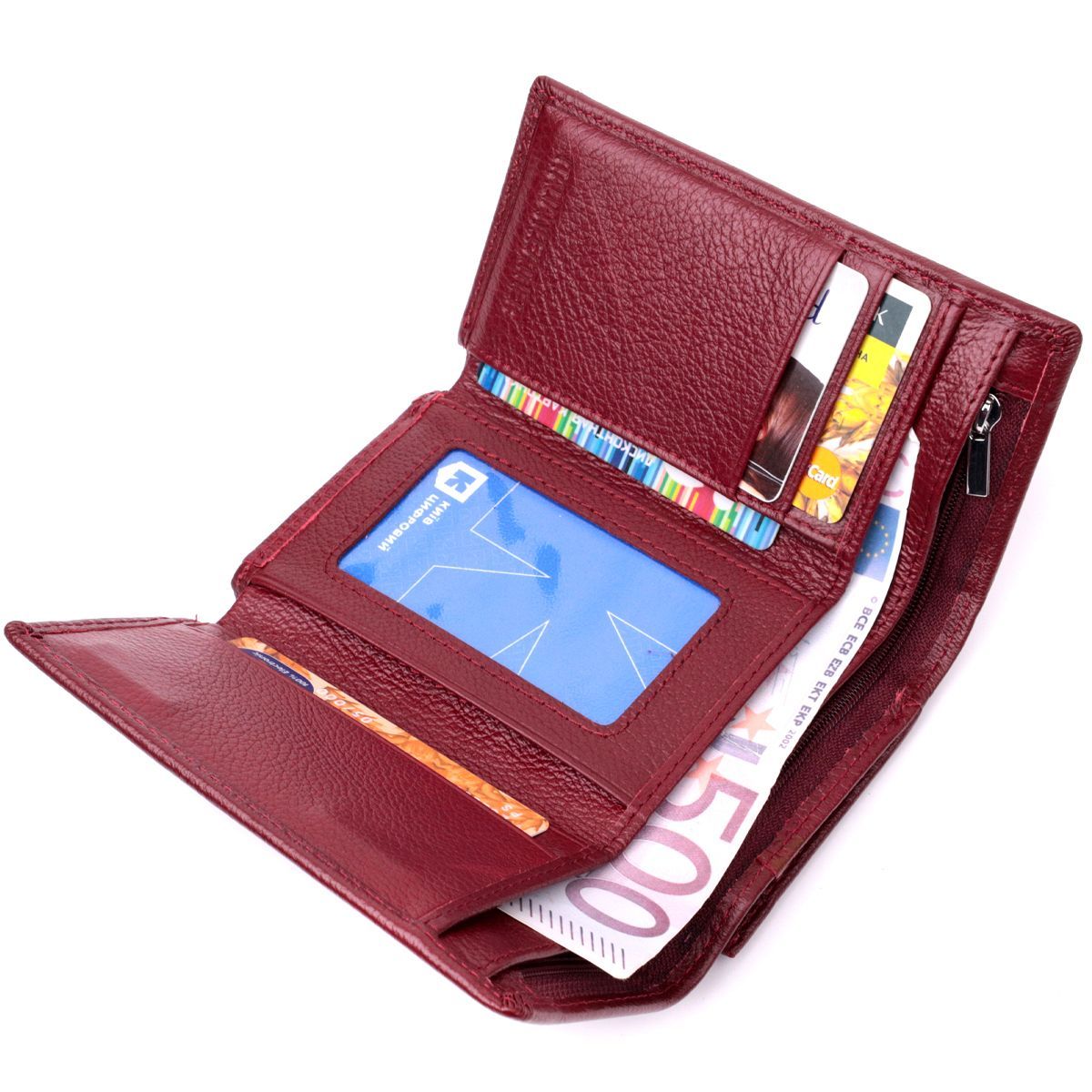 Симпатичний жіночий гаманець у три складання з натуральної шкіри ST Leather 19470 бордовий