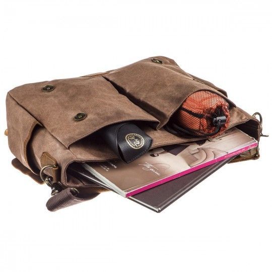 Якісний портфель у комбінації канвас та натуральної шкіри. Виріб дуже щільний і прослужить вам дуже довго. Модель доповнена фурнітурою кольору латуні. Портфель ідеально підійде для людей, які пов'язані з бізнесом та шанувальників ділового стилю. Аксесуар можна носити в руках або через плече. Виріб буде знахідкою для будь-якого чоловіка. Якщо ви шукаєте подарунок для ділового чоловіка, рекомендуємо вам цей портфель.