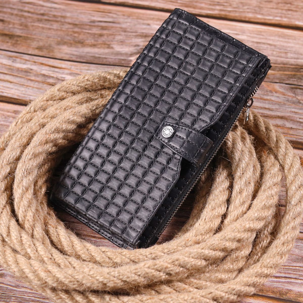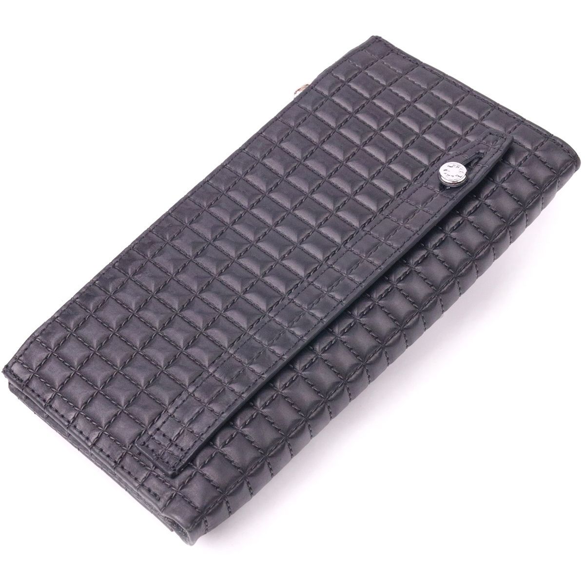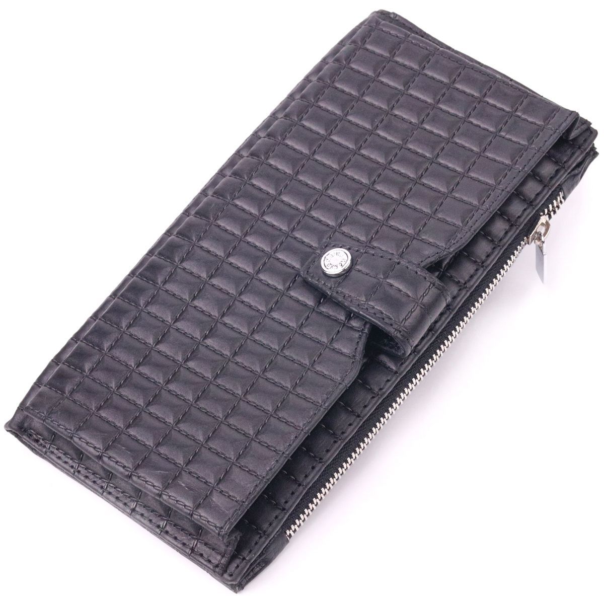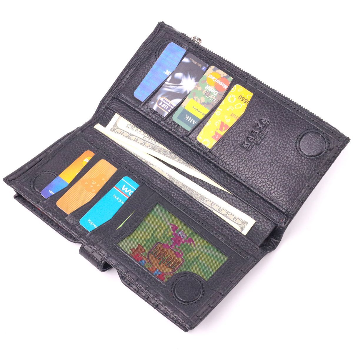 Стеганий вертикальний чоловічий гаманець з натуральної шкіри KARYA 21425 чорний