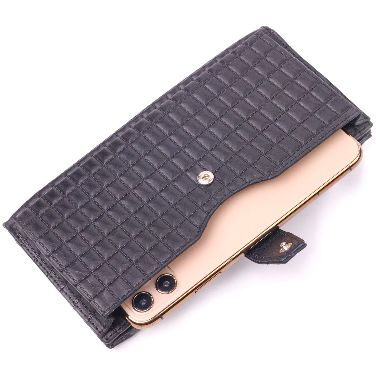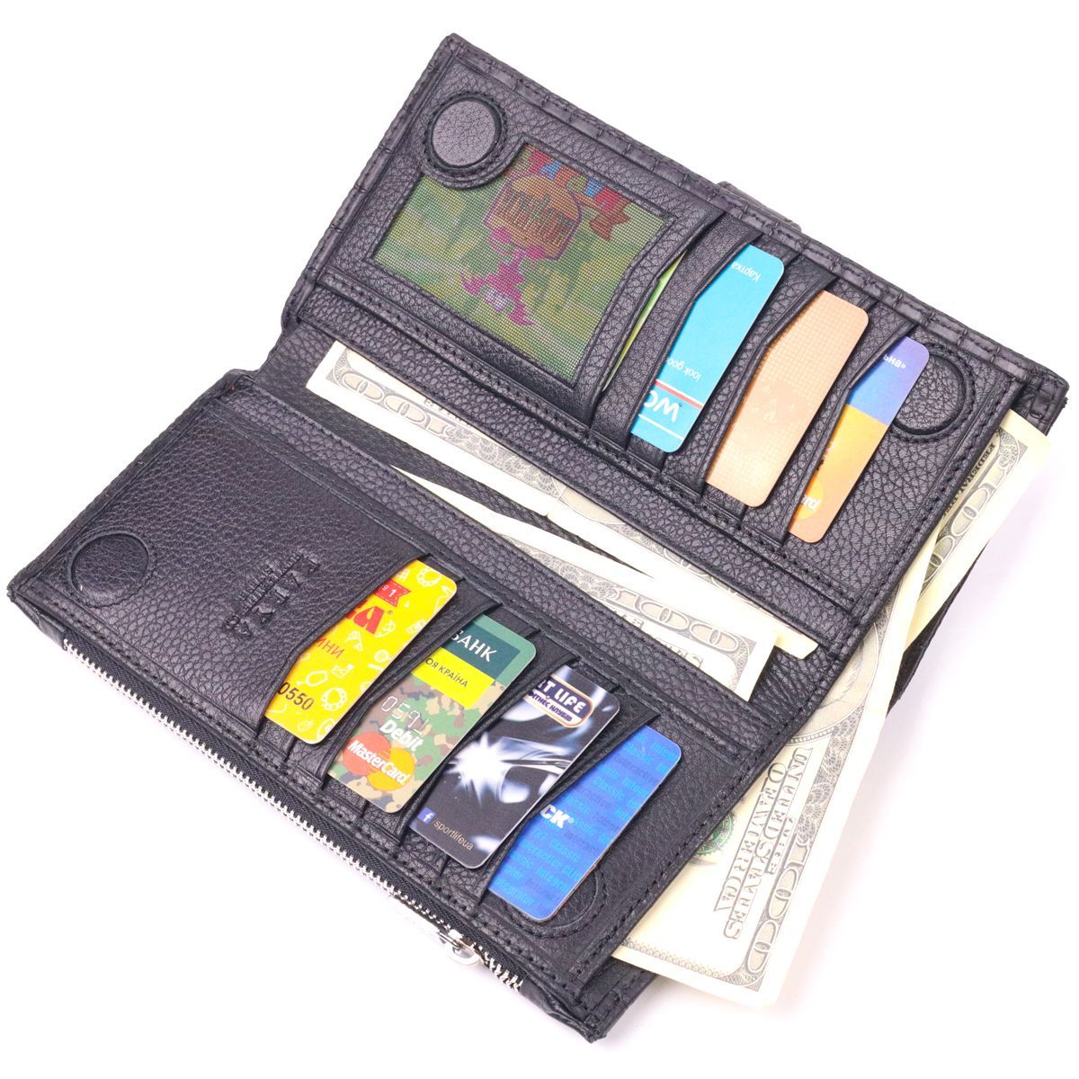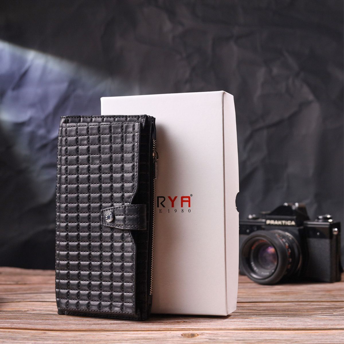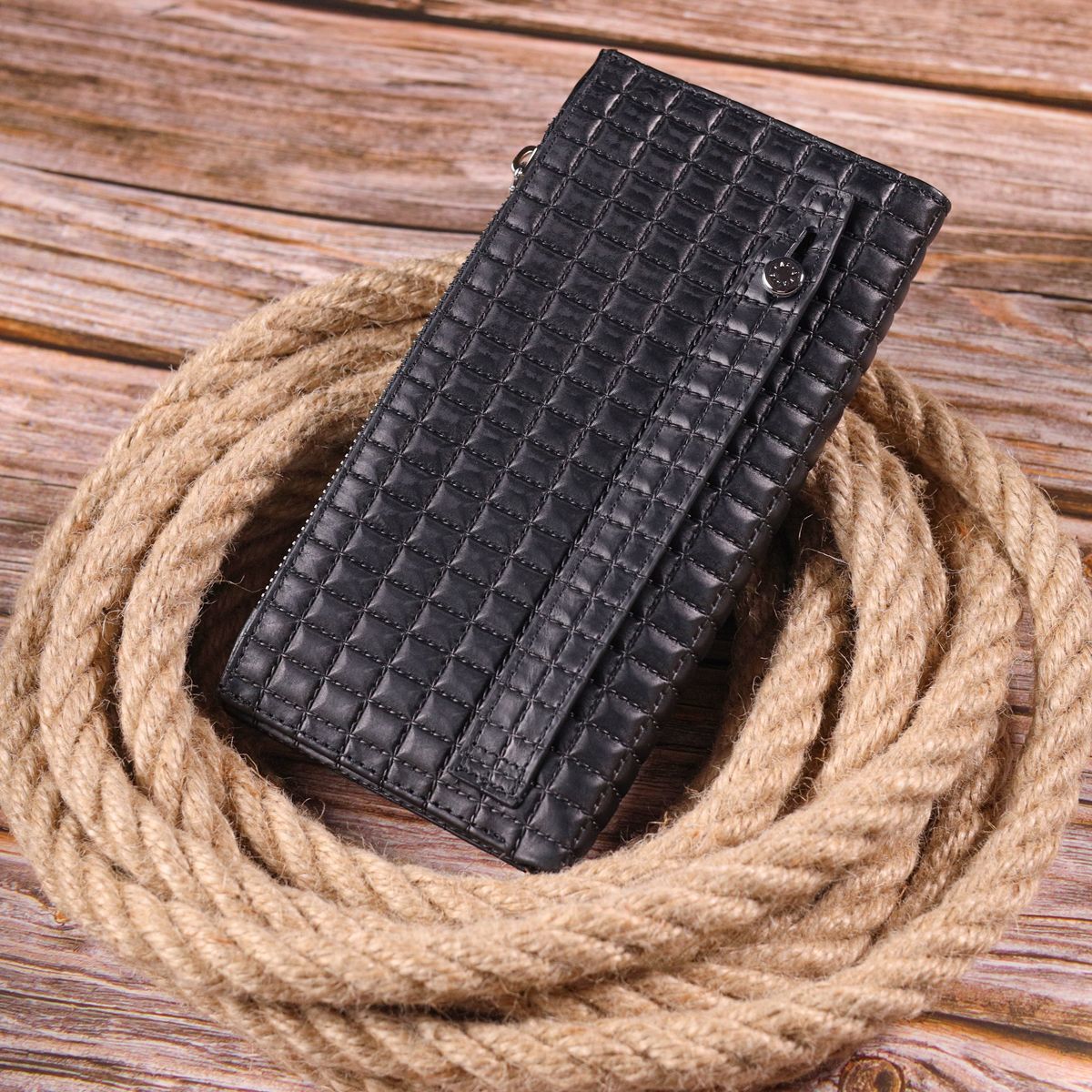 Стеганий вертикальний чоловічий гаманець з натуральної шкіри KARYA 21425 чорний