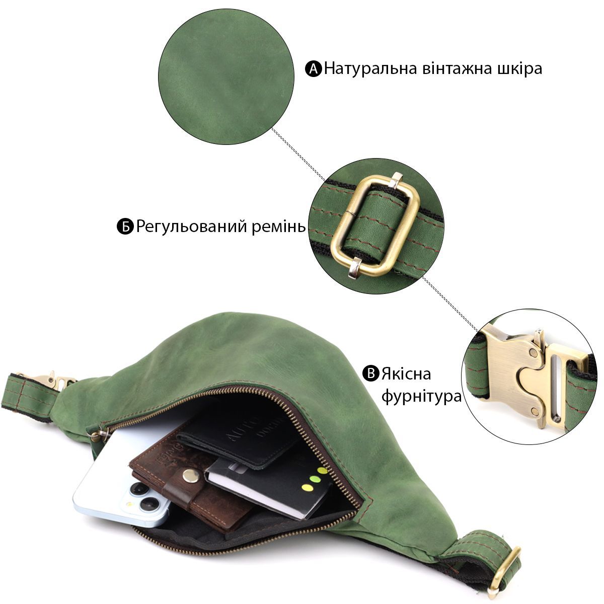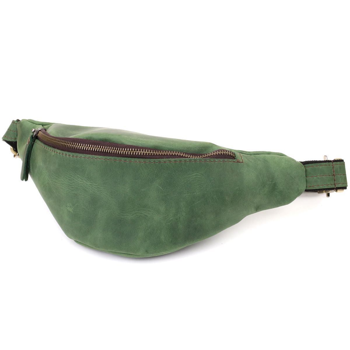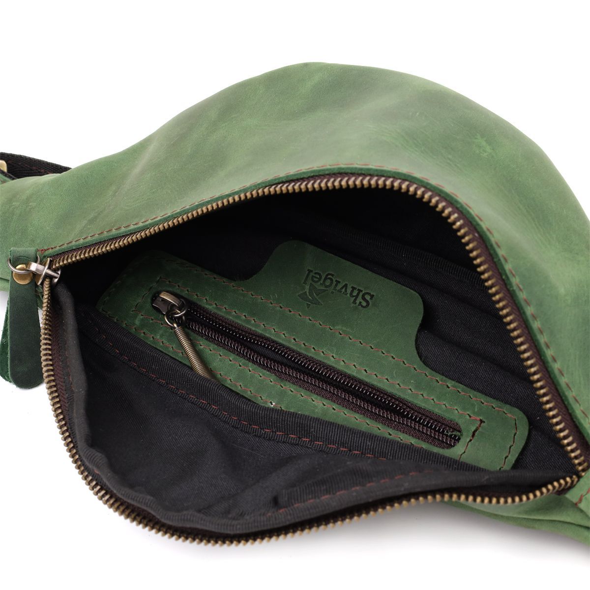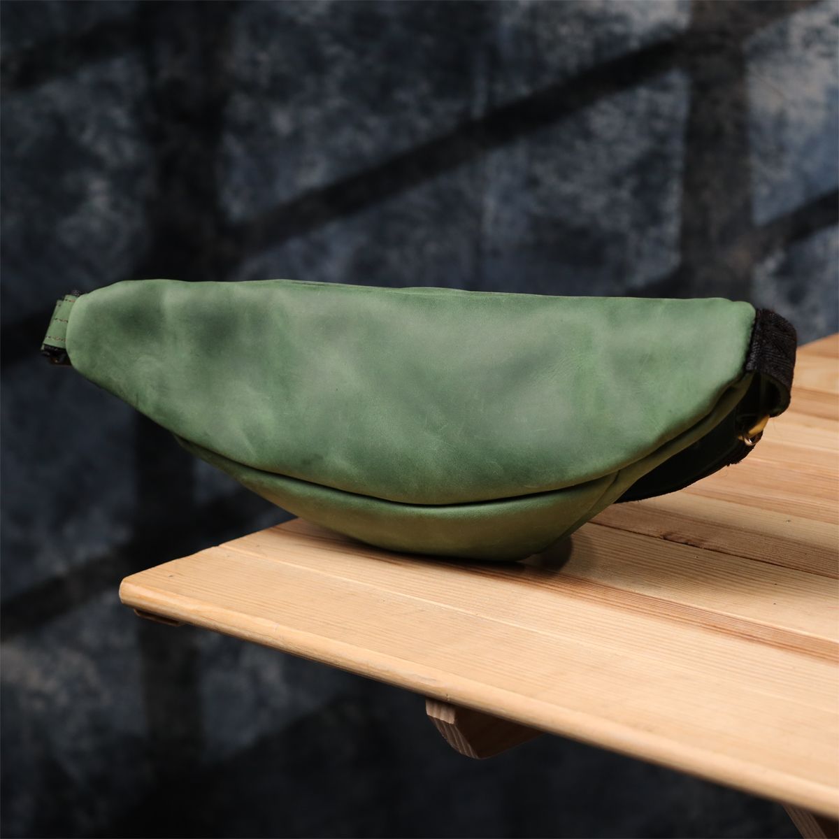 Стильна чоловіча бананка відмінної якості з натуральної шкіри вінтажної шкіри Shvigel 23142 зелена