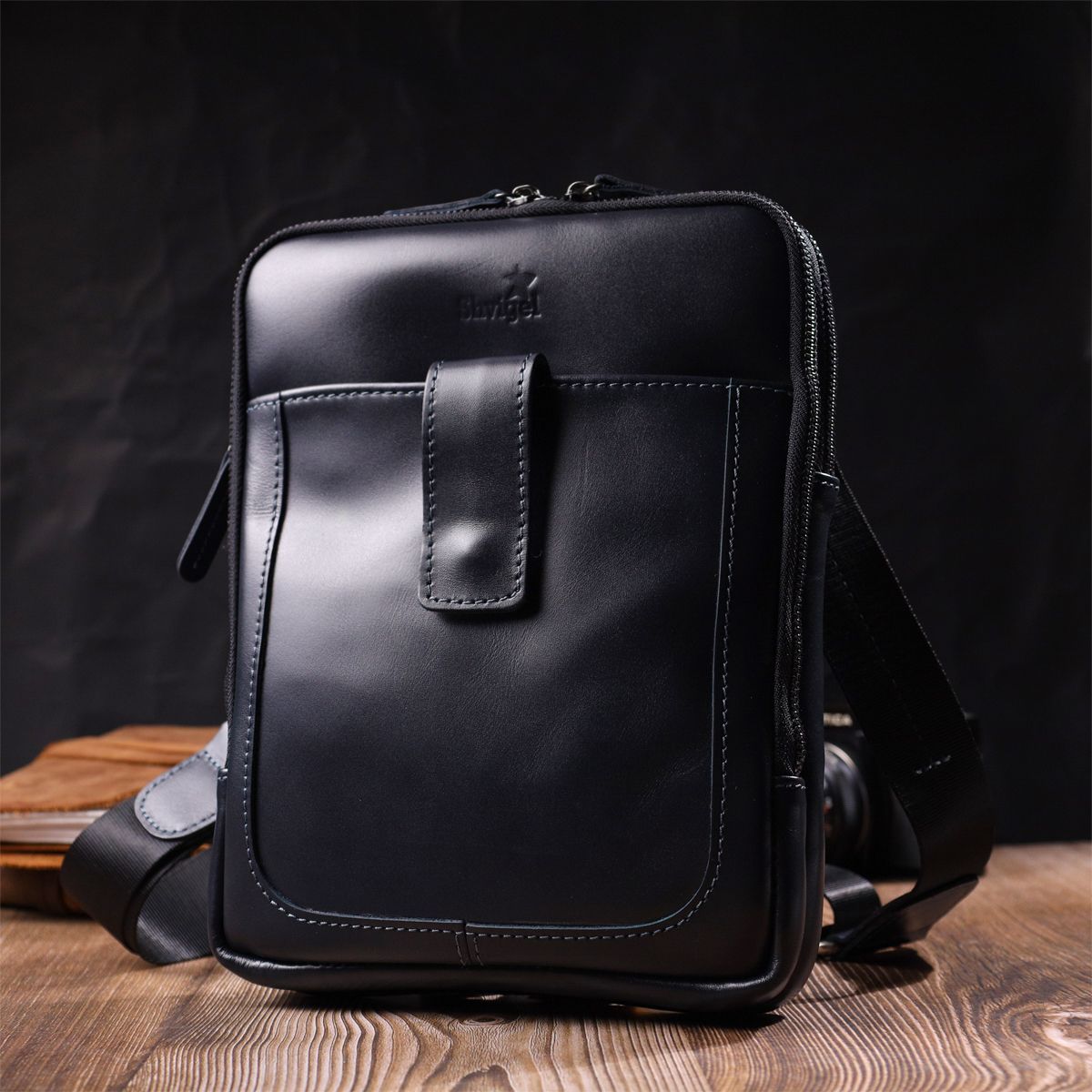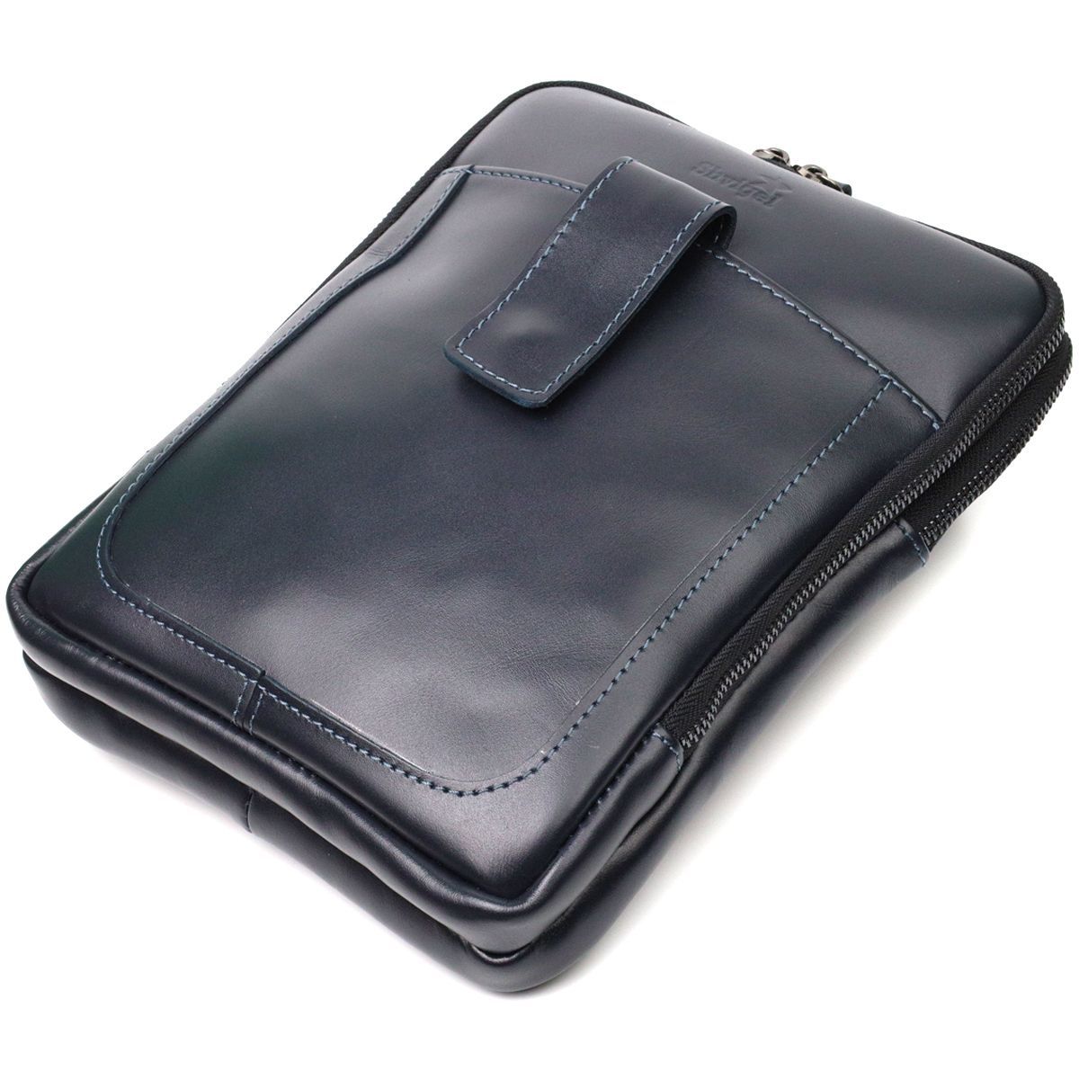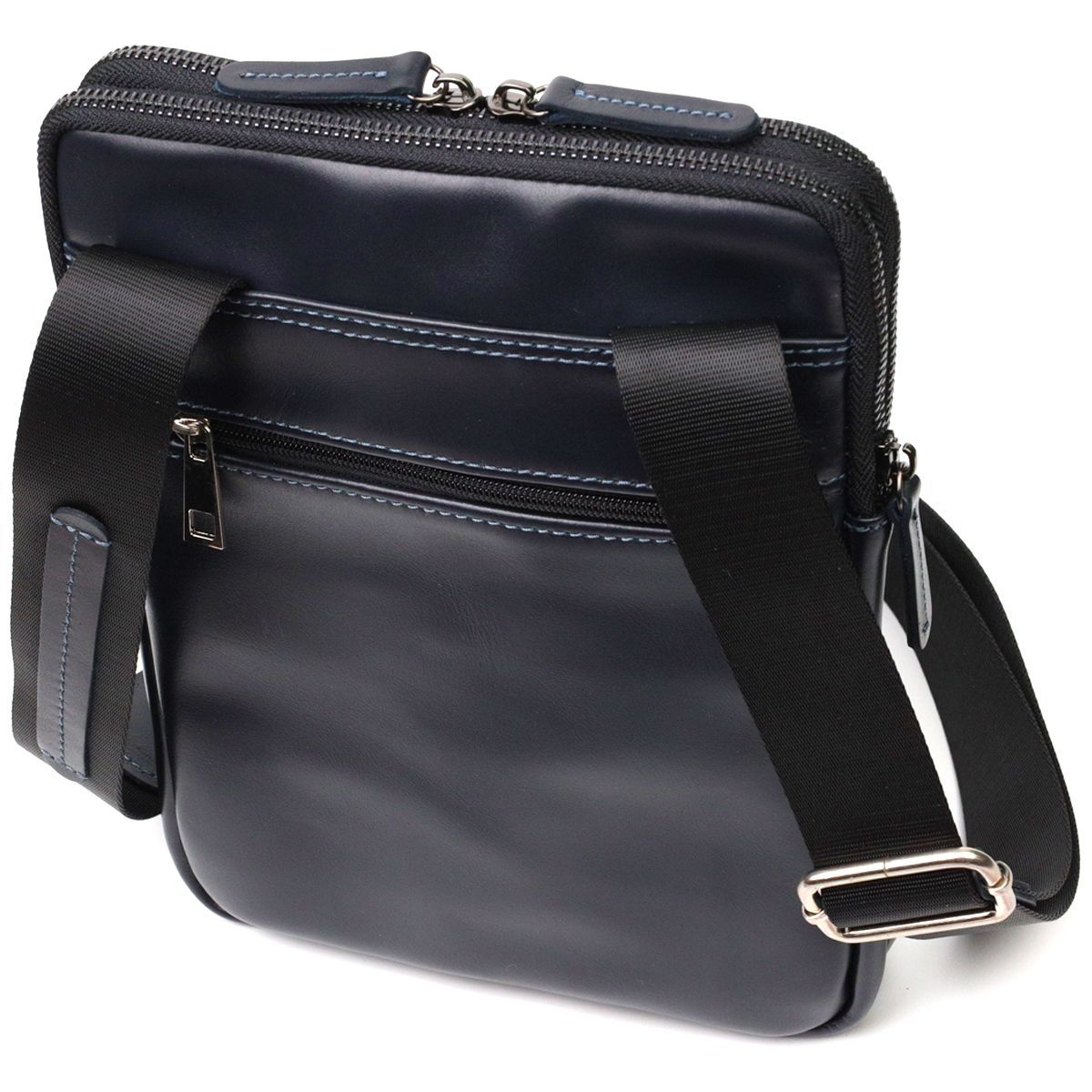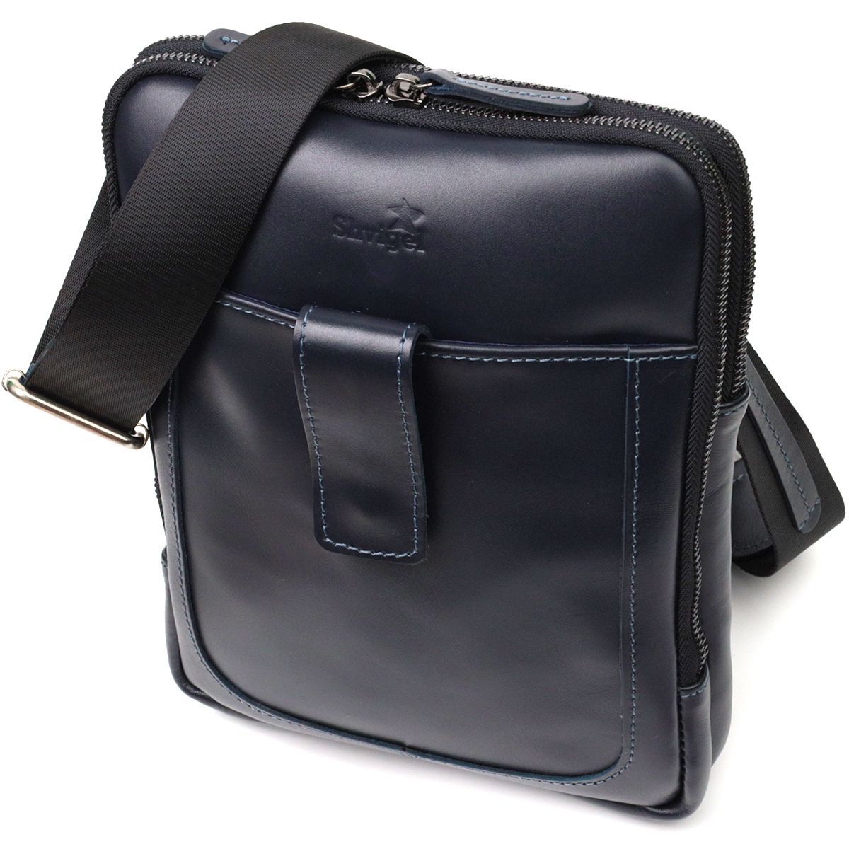 Стильна чоловіча сумка через плече із натуральної шкіри SHVIGEL 22142 синя
