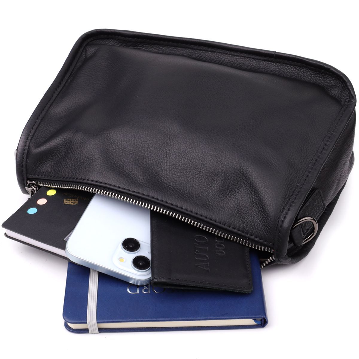 Чорна шкіряна сумка з двома ремінцями - універсальний аксесуар, який стане надійним та стильним супутником у повсякденному житті.