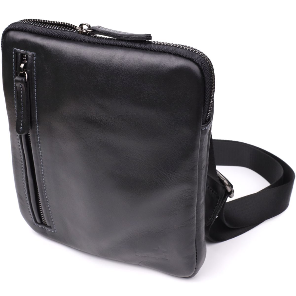 Елегантна чоловіча вертикальна сумка із натуральної гладкої шкіри глибокого чорного кольору. Мінімалістичний дизайн та акуратне оздоблення підкреслюють статус власника та роблять аксесуар універсальним для будь-якого стилю – від класичного до повсякденного. Практична внутрішня організація та міцний незнімний ремінь забезпечать комфорт у щоденному використанні. Сумка від українського бренду SHVIGEL – це гармонія якості, функціональності та сучасного стилю.