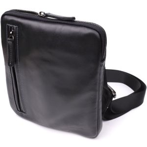 Стильна та практична чоловіча сумка на плече з натуральної гладкої шкіри Shvigel 23153 чорна