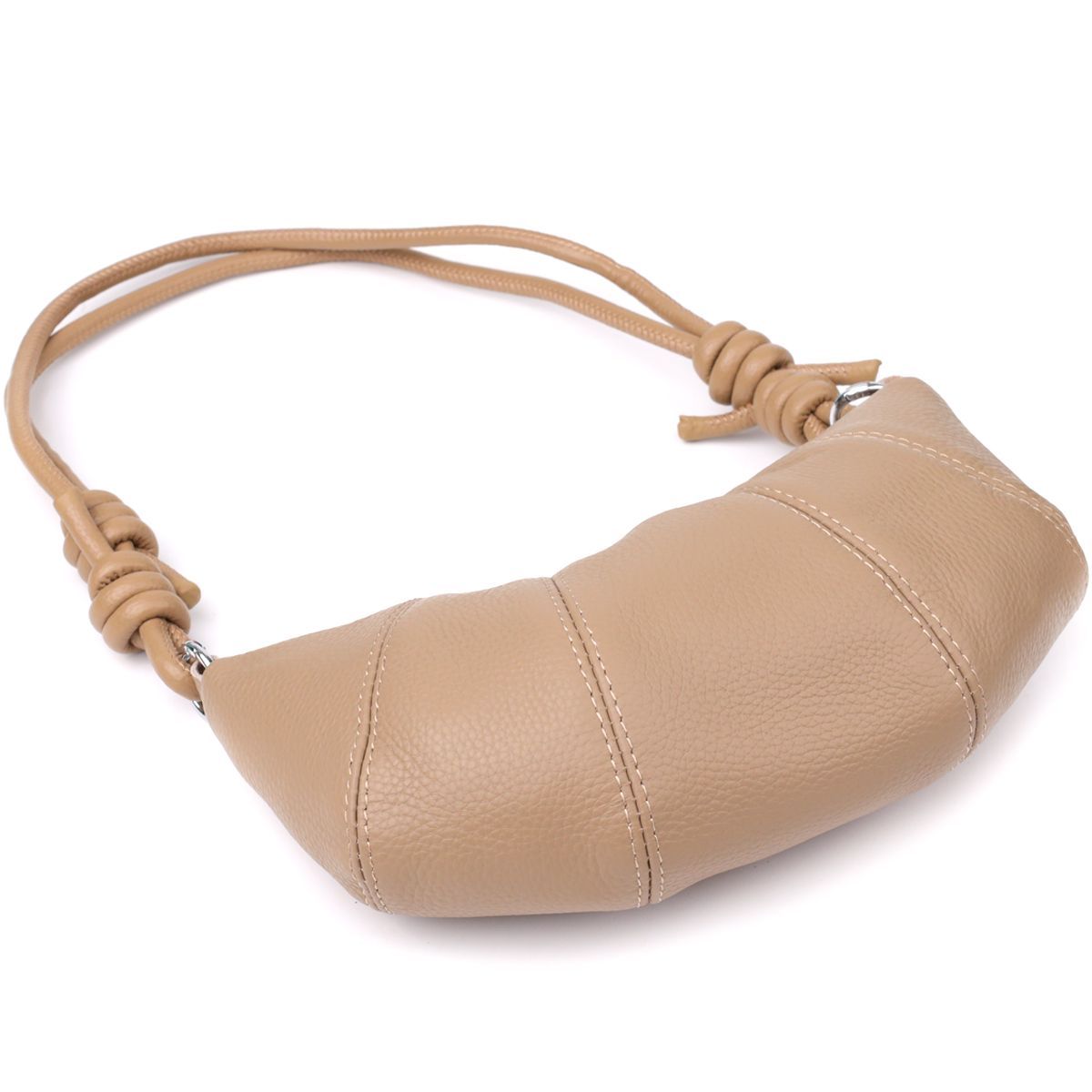 Бежева шкіряна сумка з ремінцем-мотузкою - відмінний вибір для тих, хто цінує легкість, стиль та функціональність у повсякденних аксесуарах.