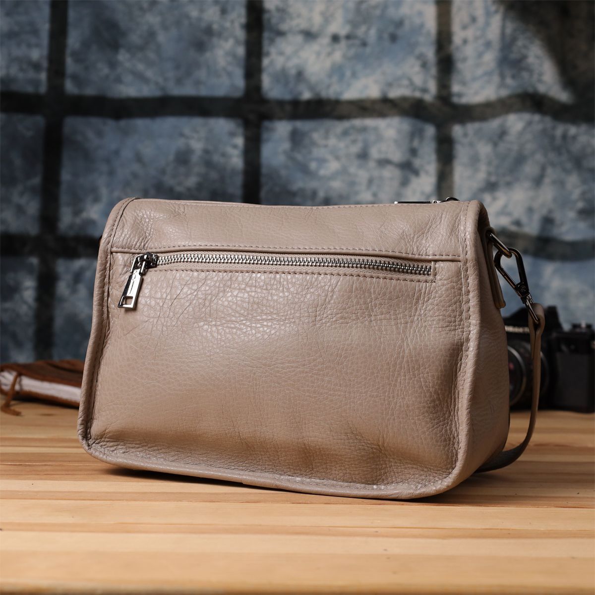 Темно-сіра шкіряна сумка - ідеальний вибір для тих, хто цінує стриману елегантність, функціональність та комфорт в одному аксесуарі.
