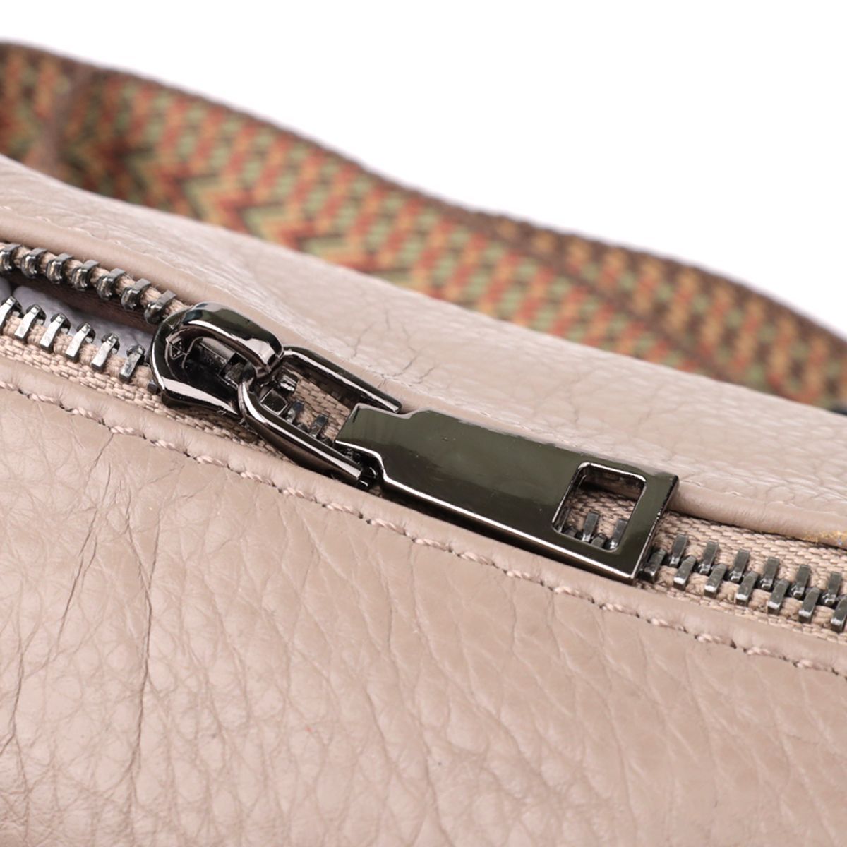 Фурнітура кольору срібла підкреслює холодний тон шкіри, створюючи акуратний та стильний контраст. У комплект входять два знімні ремінці - шкіряний і текстильний, що дозволяють носити сумку в різних варіантах: на плечі, через плече або в руці.