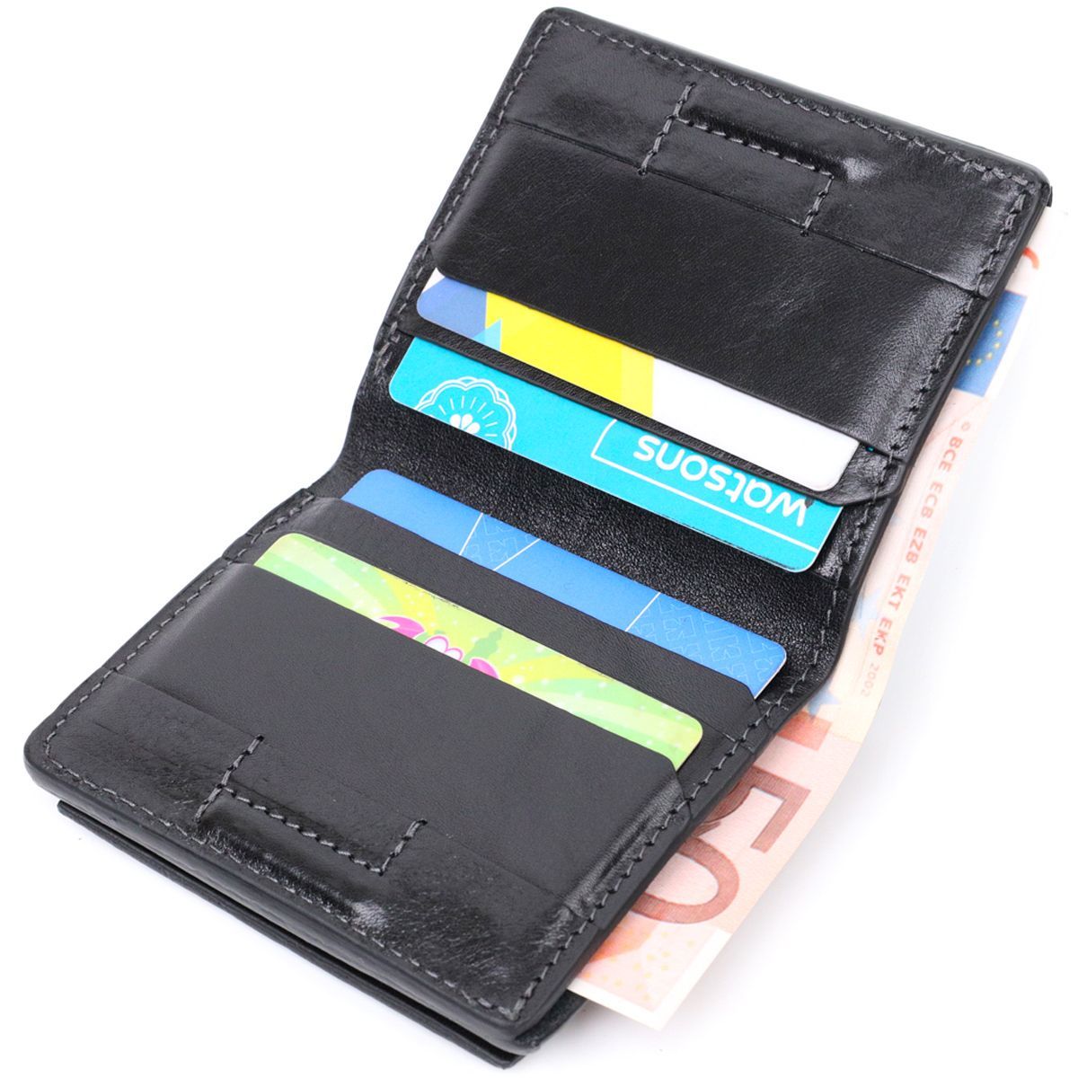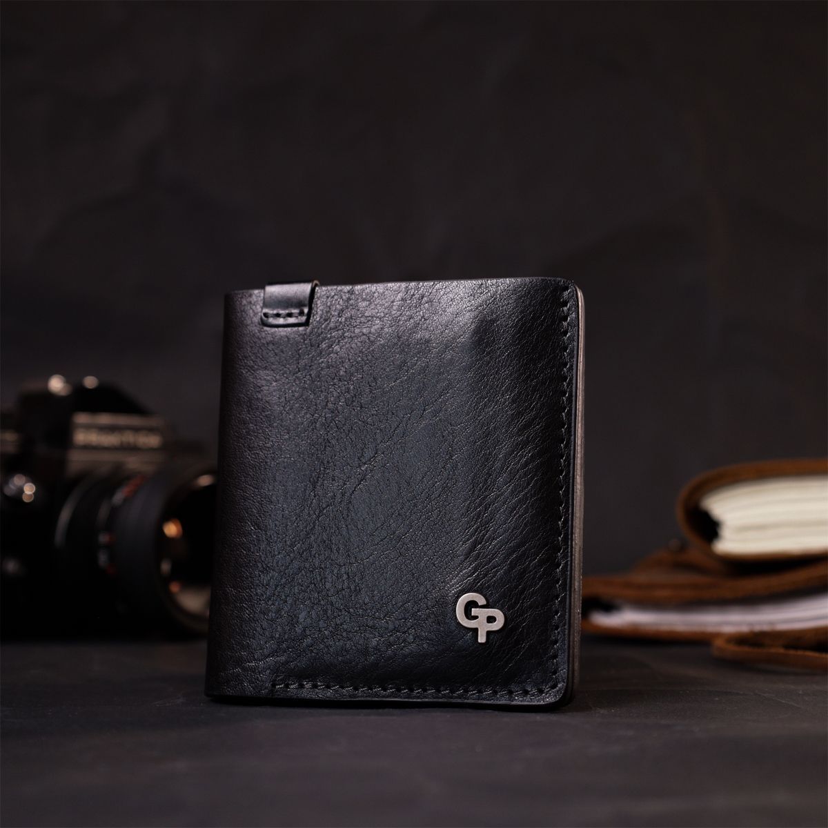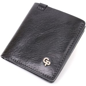Стильне портмоне з накладною монетницею з натуральної шкіри Grande Pelle 11643 чорний