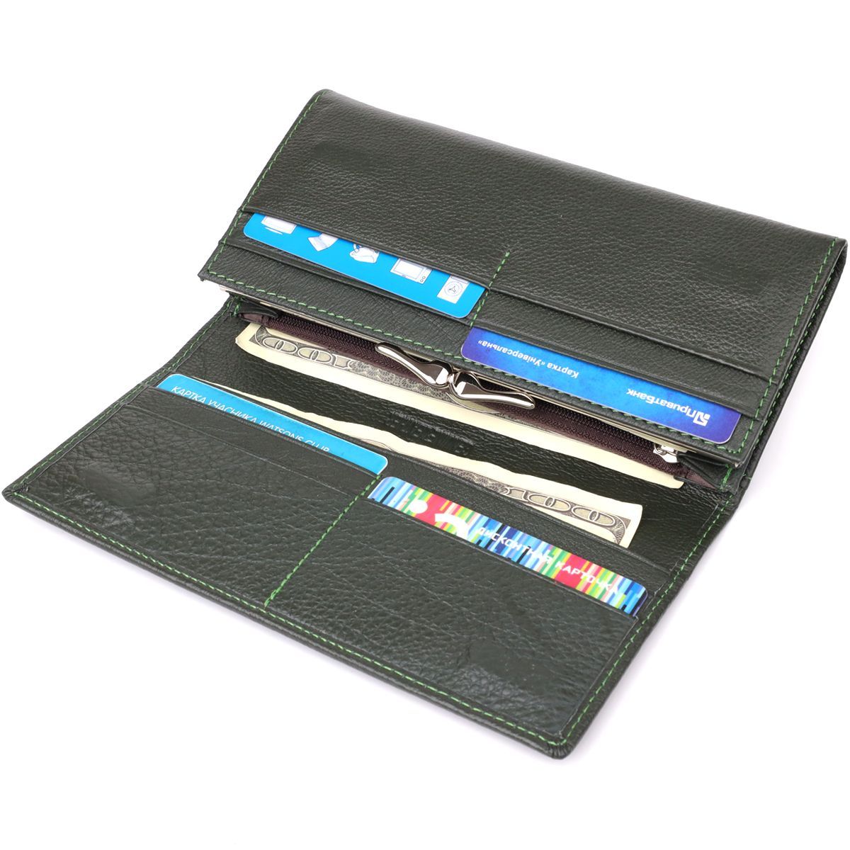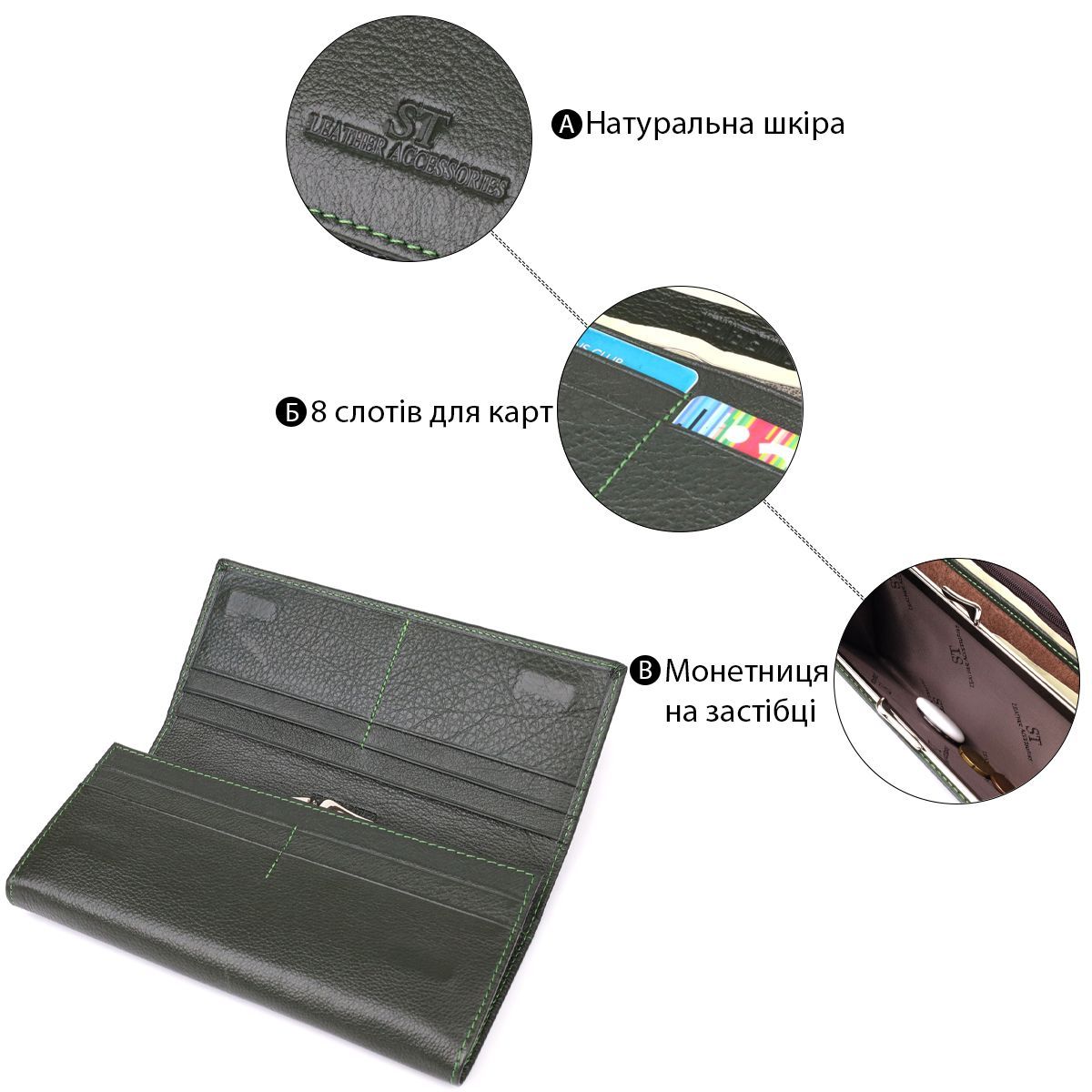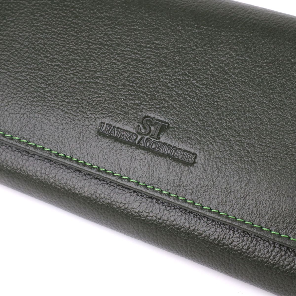 Стильний гаманець у два складення з натуральної шкіри ST Leather 23066 зелений