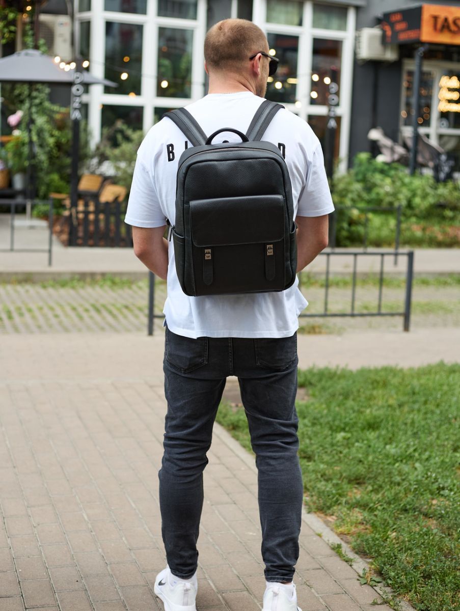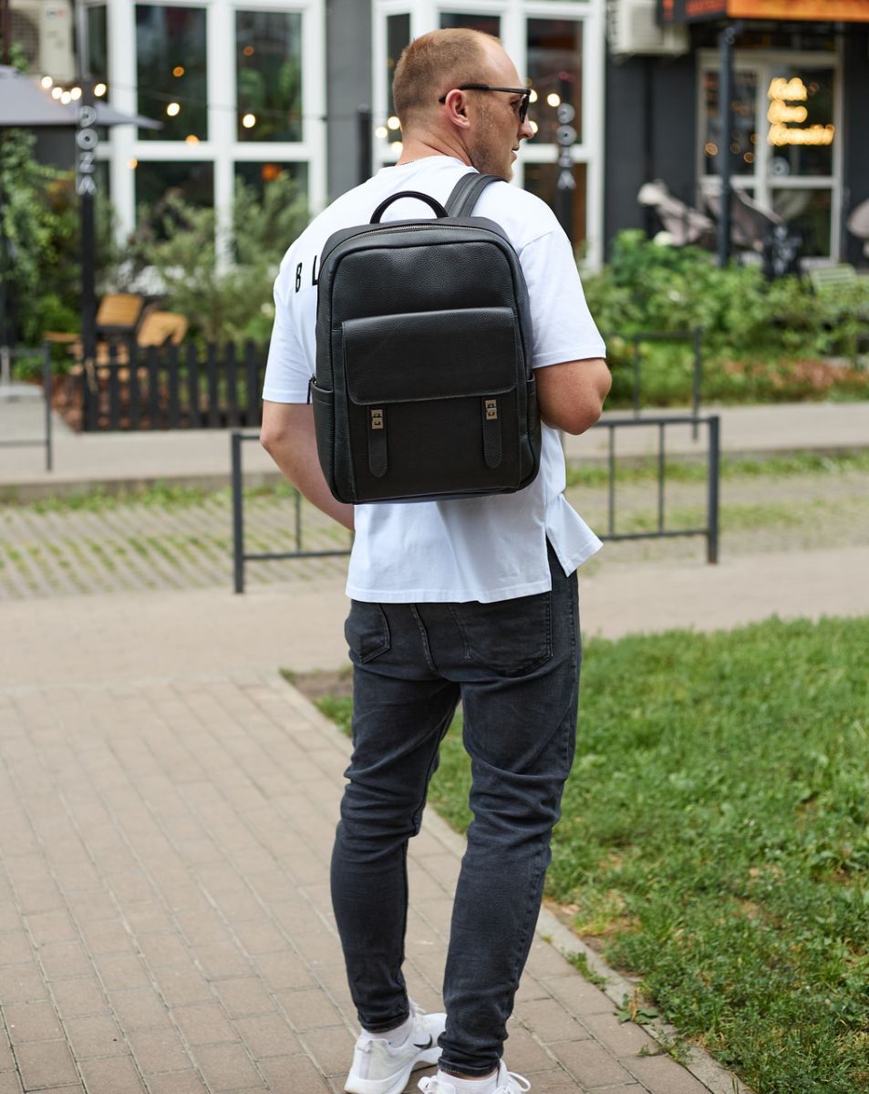 Стильний і практичний чоловічий шкіряний рюкзак для ноутбука та документів чорний TD-93898 Tiding Bag