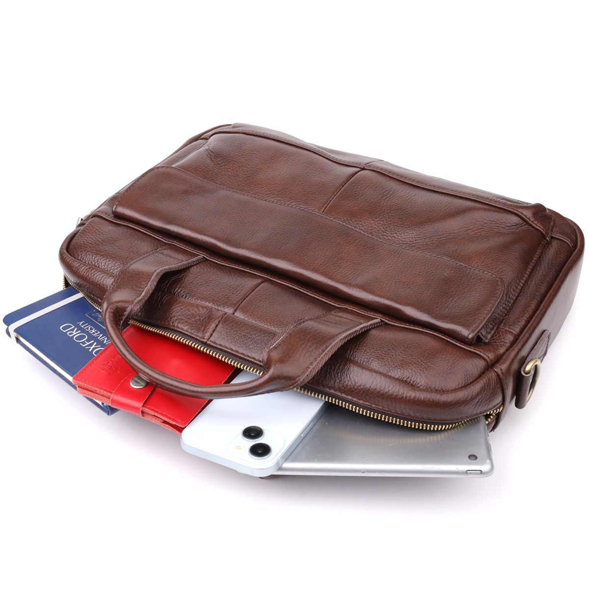 Цей портфель у теплому коричневому відтінку та із зернистої шкіри стане гідним доповненням до ділового образу та відмінним супутником у повсякденних поїздках.