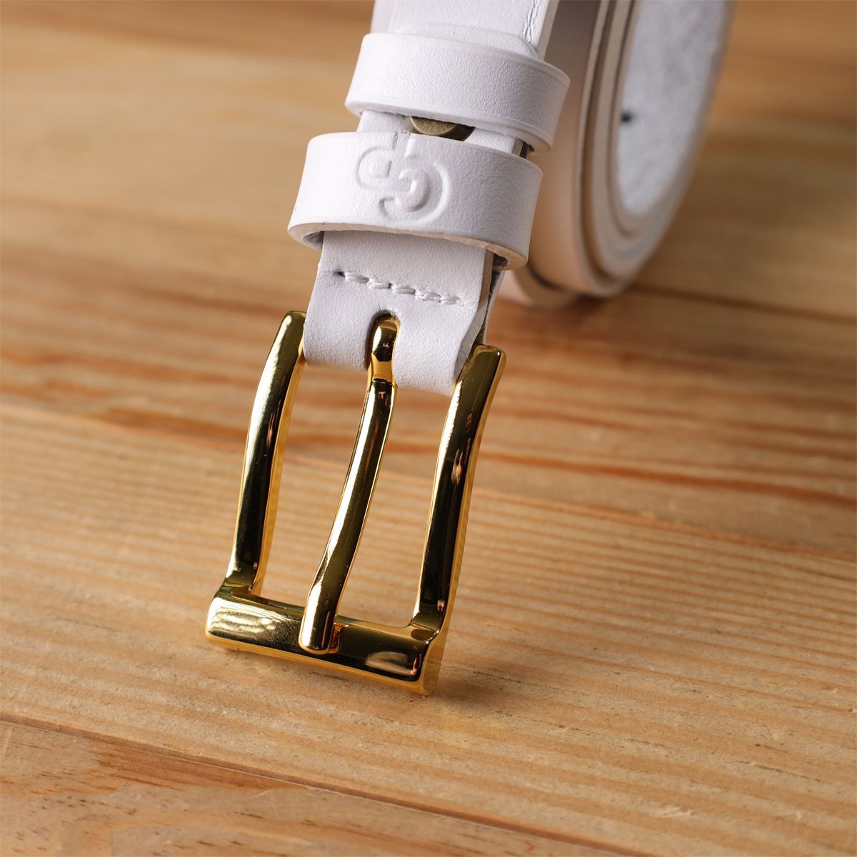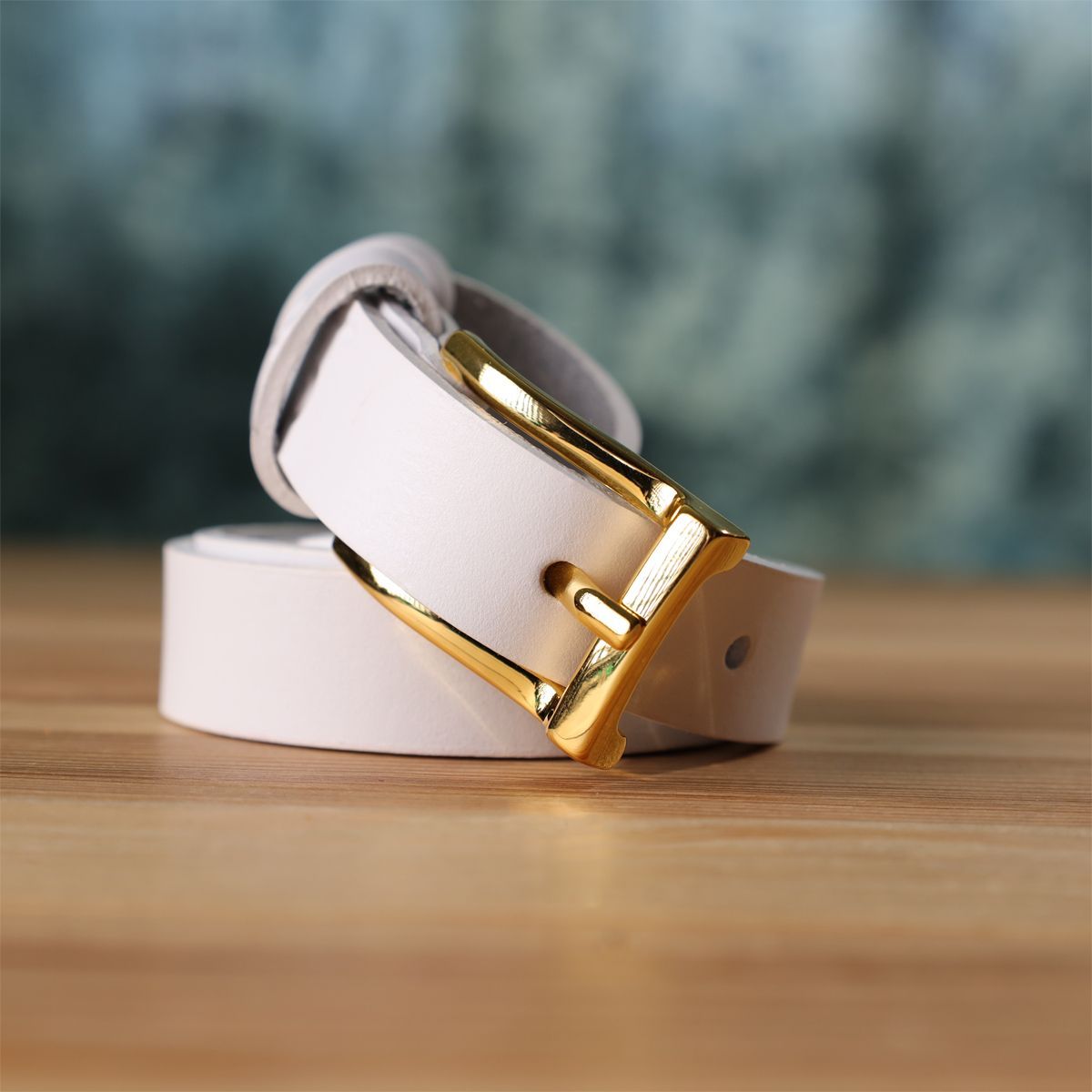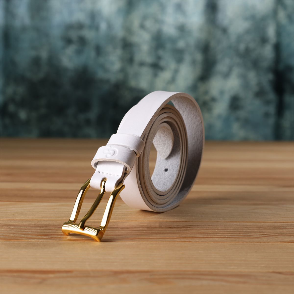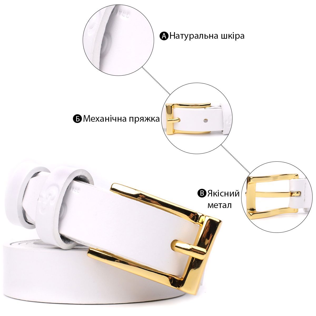 Стильний тонкий шкіряний ремінь для жінок GRANDE PELLE 22948 білий
