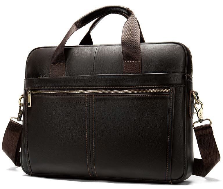 Стильна сумка для ділових чоловіків. Підкреслить ваш статус в суспільстві і відмінне почуття стилю. Аксесуар чудово впишеться в ваш діловий стиль. В сумці спокійно можна носити ноутбук і документи. Зручно носиться як в руках, так і на плечі за допомогою текстильної ручки. Дизайн аксесуара виготовлений в класичному стилі. Модель прошита рудою ниткою і доповнена золотистою фурнітурою. Буде чудовим подарунком для будь-якого чоловіка. Купуючи таку сумку, ви будете здивовані, як вона приємно носиться. Аксесуар упакований в тканинний чохол.