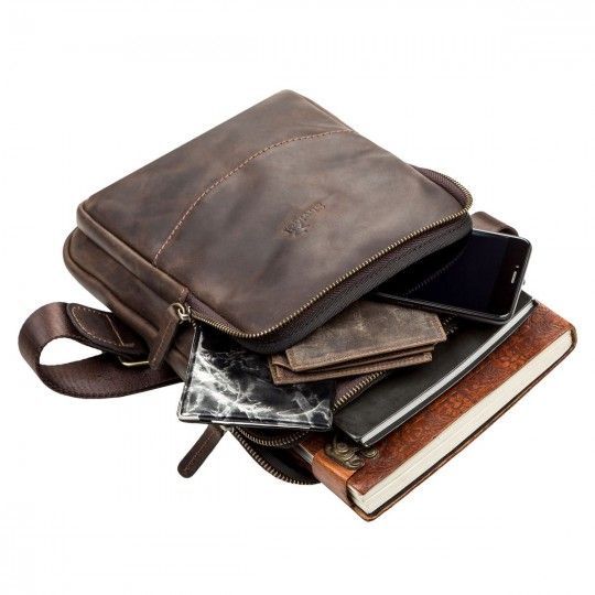 Невелика чоловіча сумка-планшет, з натуральної вінтажної шкіри, характерними ознаками якої є: неоднорідність забарвлення та потертості, які надають виробу вишуканого, індивідуального вигляду. Відмінний подарунок для стильного, сучасного чоловіка.
