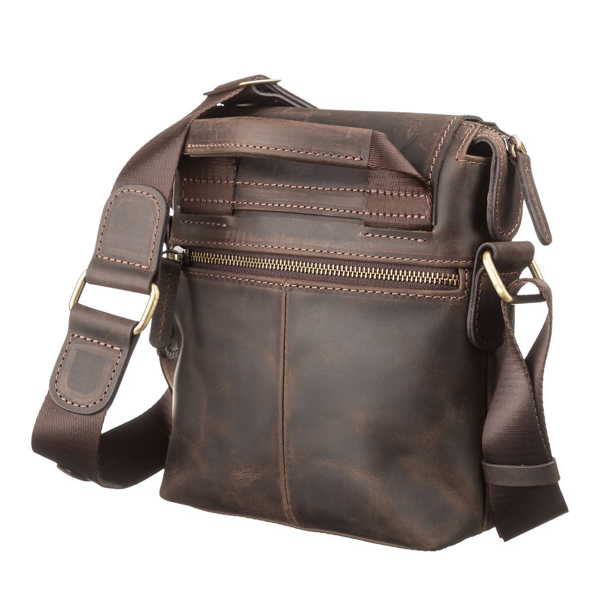 Чоловіча сумка невеликого розміру з клапаном. Аксесуар виконаний з натуральної вінтажної шкіри, характерними ознаками якої є: неоднорідність забарвлення та потертості, які надають виробу вишуканого, індивідуального вигляду.