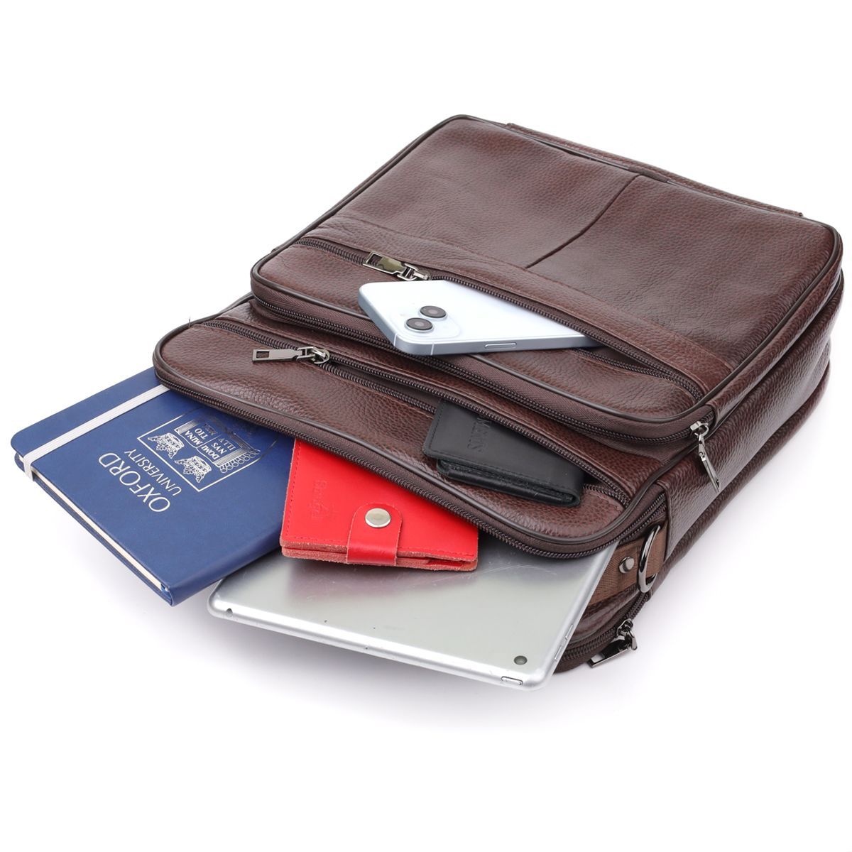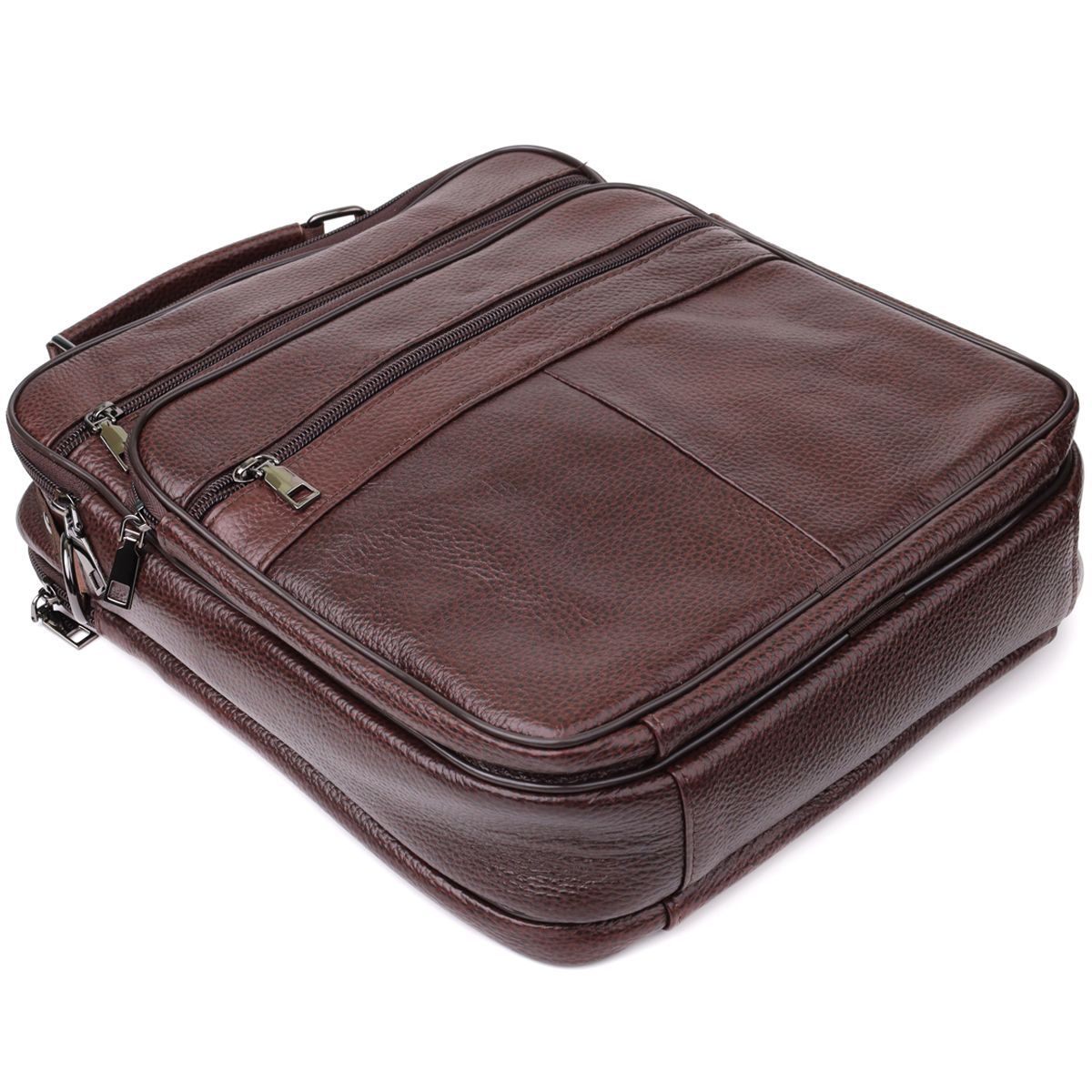 Стильна чоловіча сумка виконана з міцної зернистої шкіри флотар, яка відрізняється вираженою текстурою і високою зносостійкістю.