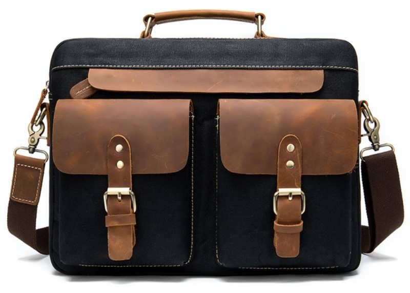 Сумка-портфель чоловіча текстильна зі шкіряними вставками 20002 Vintage чорний