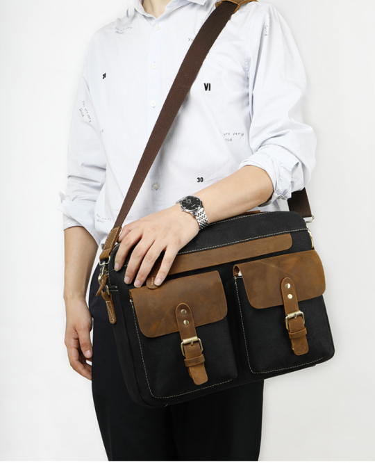 Ділова текстильна сумка із вставками натуральної шкіри для чоловіків. У сумку легко вміщується ноутбук та папки з документами. Ідеальний вибір для найзайнятіших та ділових чоловіків. Модель ідеально має форму. По краях аксесуар прошитий світлою ниткою. Усередині сумки міцна текстильна підкладка коричневого кольору. Оригінальний дизайн сумки не залишать вас непоміченим. Ви будете приємно здивовані, тим як сумка довго носитиметься. Може бути чудовим варіантом для подарунка для будь-якого чоловіка.