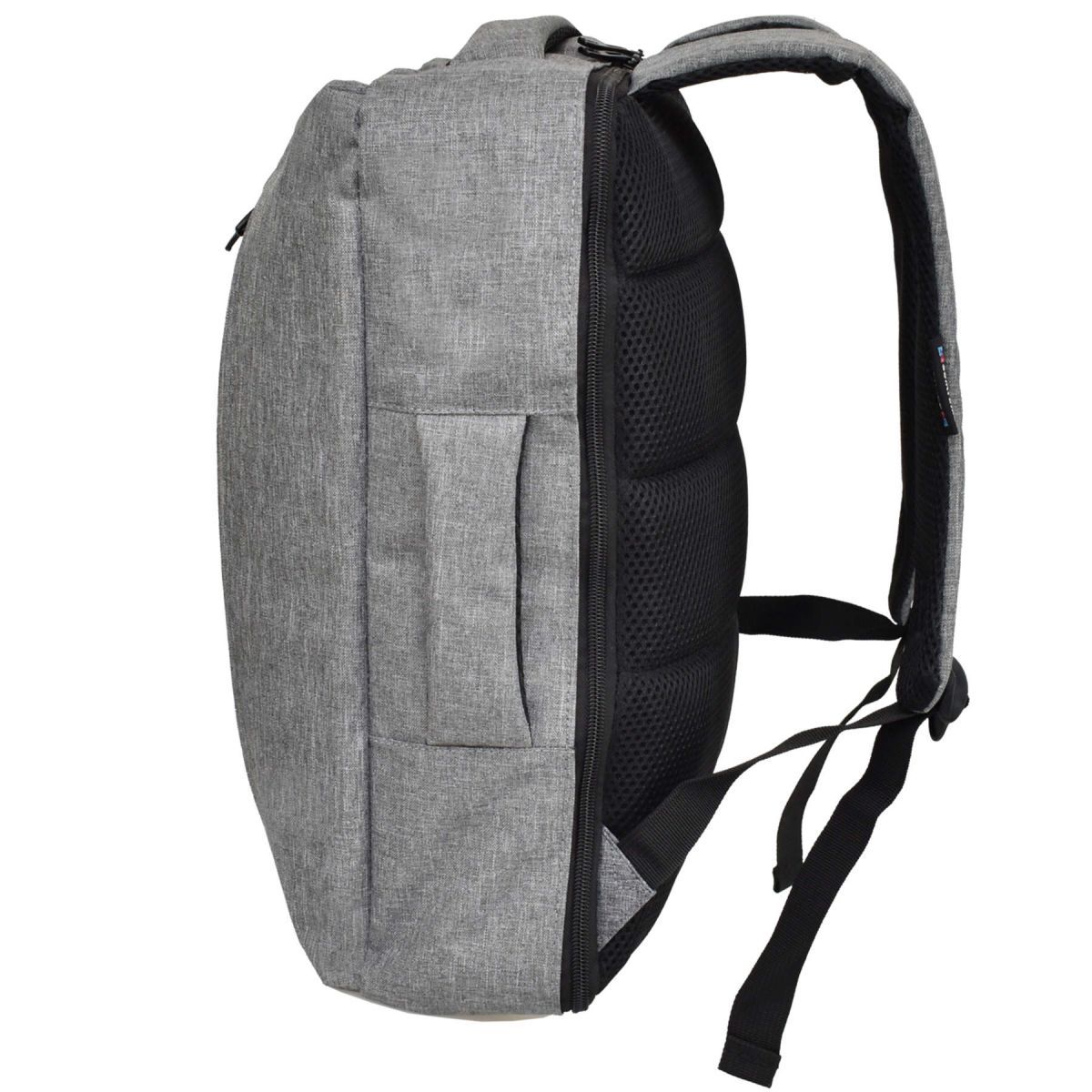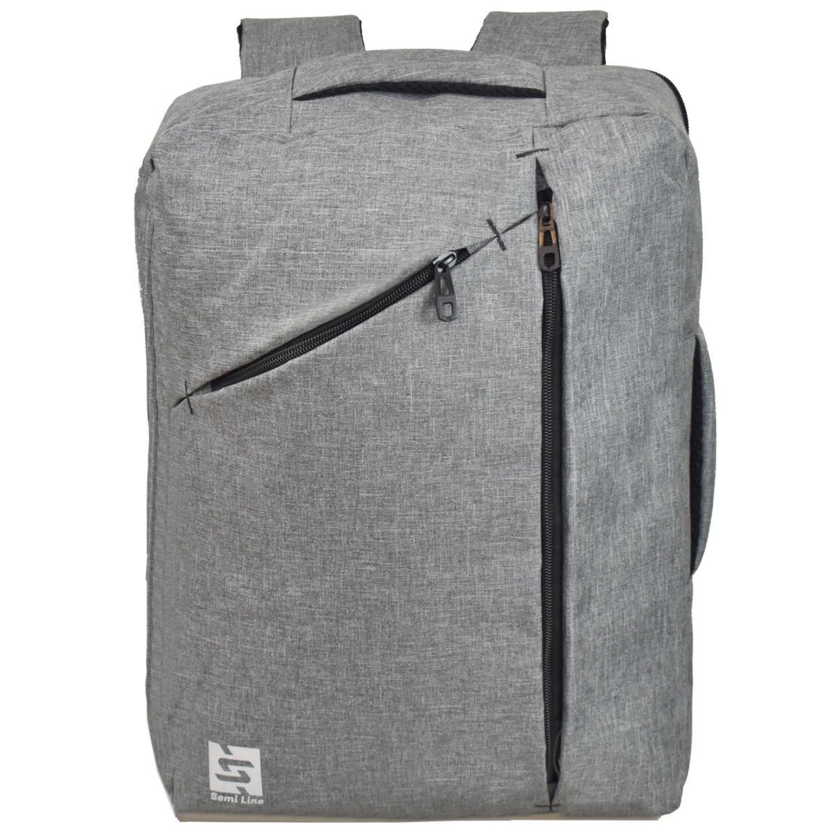 Сумка-рюкзак Semi Line 14 Grey - це практичний і стильний вибір для повсякденного використання і поїздок вихідного дня. Фактично - це міський рюкзак, що має додаткову бічну ручки і може використовуватись в якості сумки. Сумка-рюкзак має два великих відділи, один з яких широко відкривається і має спеціальний карман для ноутбука діагоналлю до 15.6", також в ньму зручно розміщати одяг чи документи. В другому відділі поміститься ємність з водою, парасоля чи будь-які інші необхідні речі. Також є кишеня для дрібниць і документів.