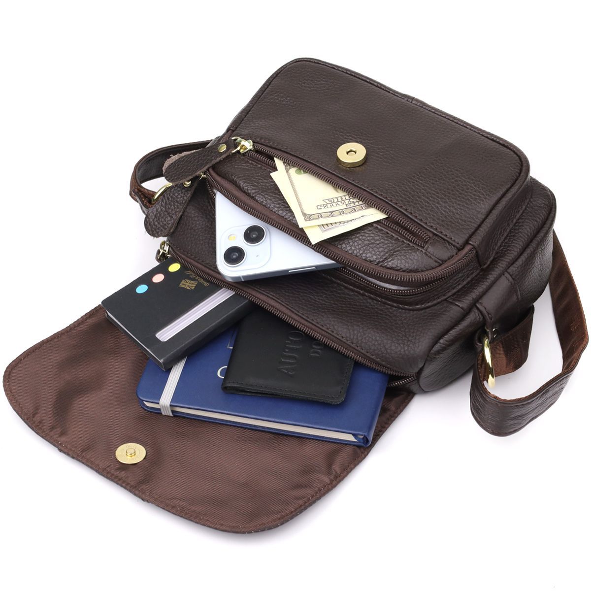 Ця шкіряна сумка на плече - ідеальний вибір для жінок, які цінують практичність, стиль та порядок у кожній деталі.